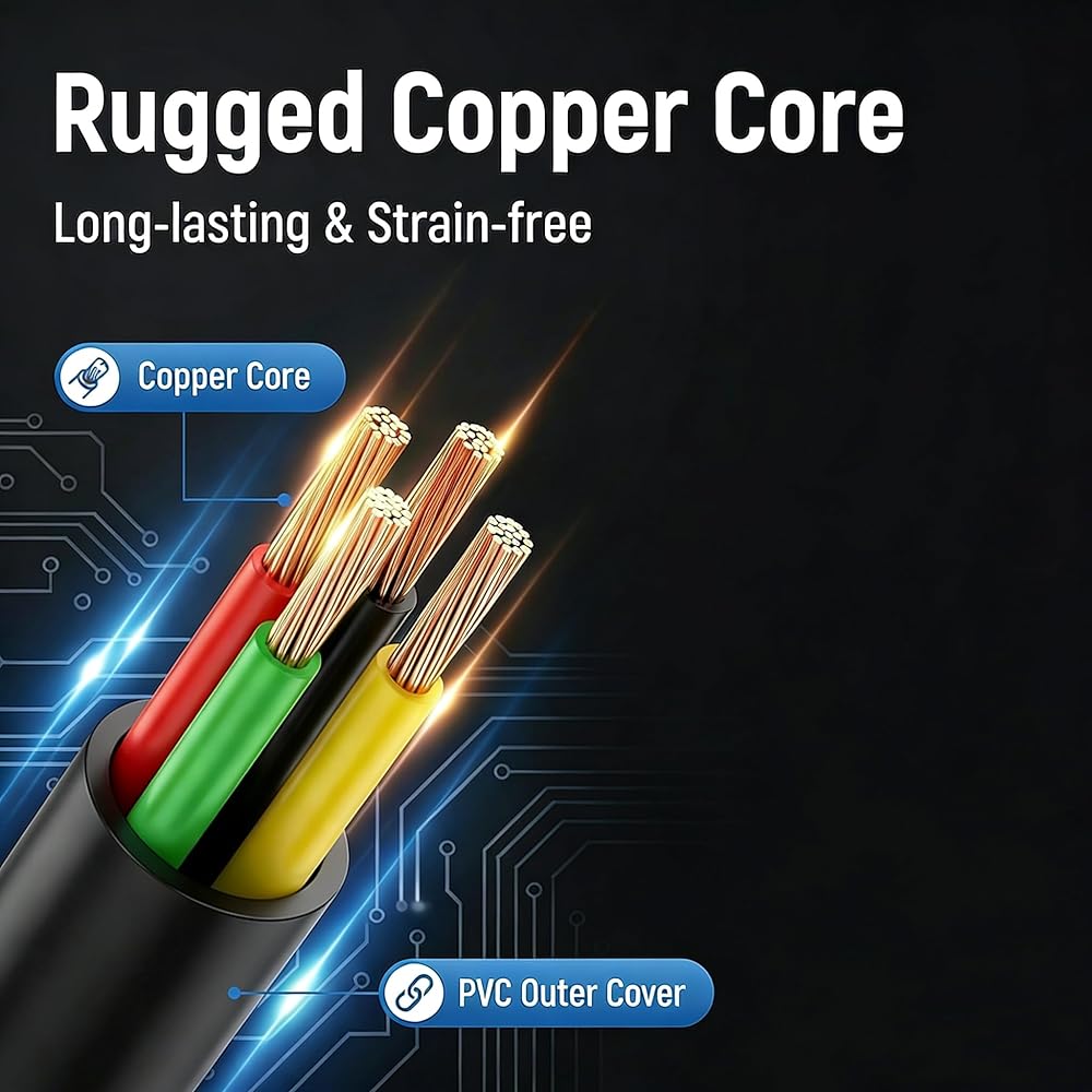 3. Crystal-Clear Signal Transmission : Gold-plated copper core + gold-plated contact pins+ and durable PVC cover, no signal loss or voice distortion for smooth calls and stable data transfer