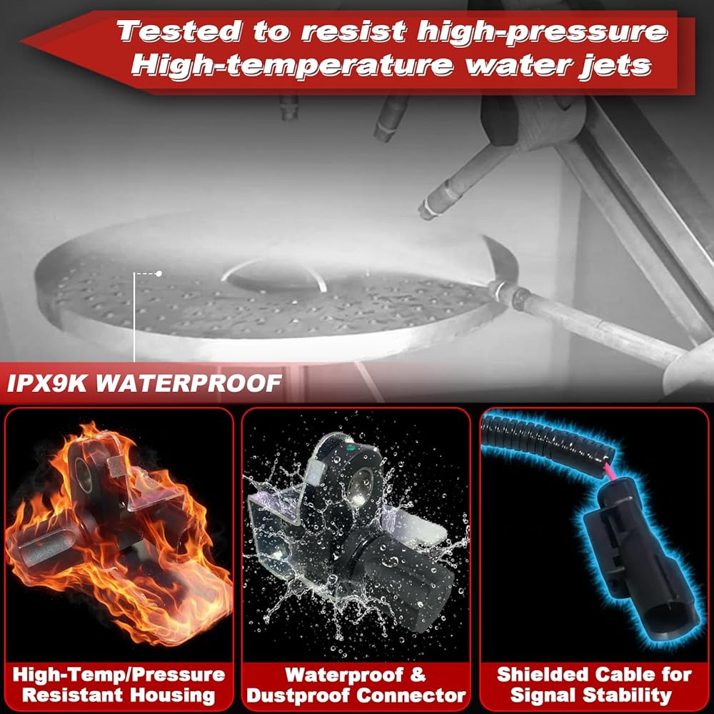 • 【Excellent Waterproof Protection – IPX9K Tested】Speed Sensor passed high-pressure, high-temperature water jet tests under IPX9K standards. Reliable in rain, mud, or car wash conditions.