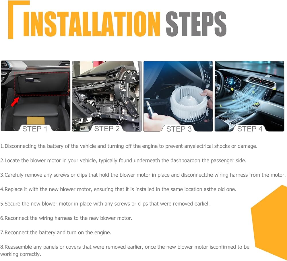 【Restores Strong Airflow – Quicker Cooling & Heating】:High-performance motor delivers powerful, consistent airflow to revive weak or failing HVAC systems.Ensures faster cabin cooling in summer & better warmth in winter for a comfortable ride.