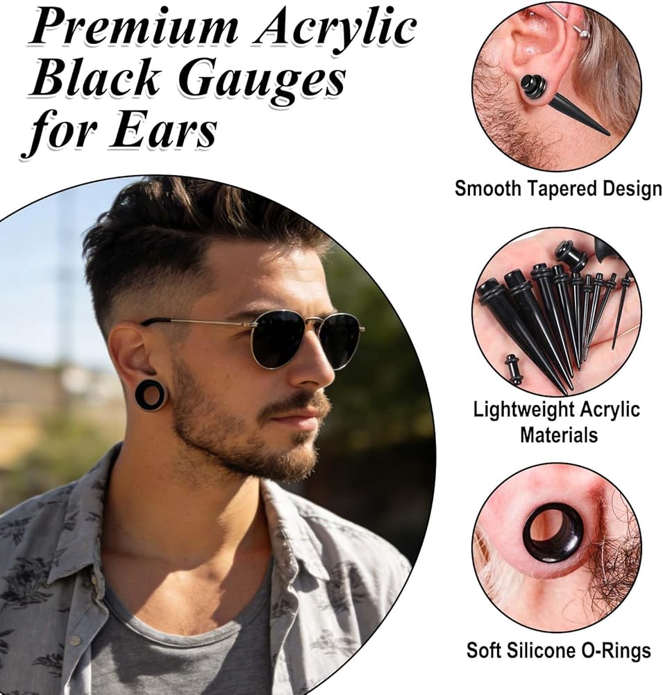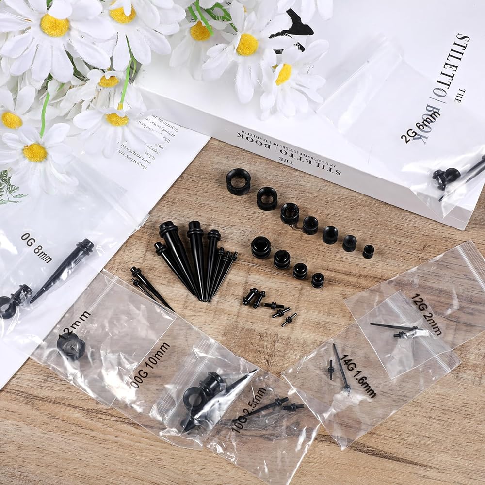 Premium Materials: our ear gauges stretching kit is made of high-quality acrylic and silicone, featuring a smooth surface, rounded edges, and durability. They provide maximum comfort during expansion and are easy to use even for sensitive ears