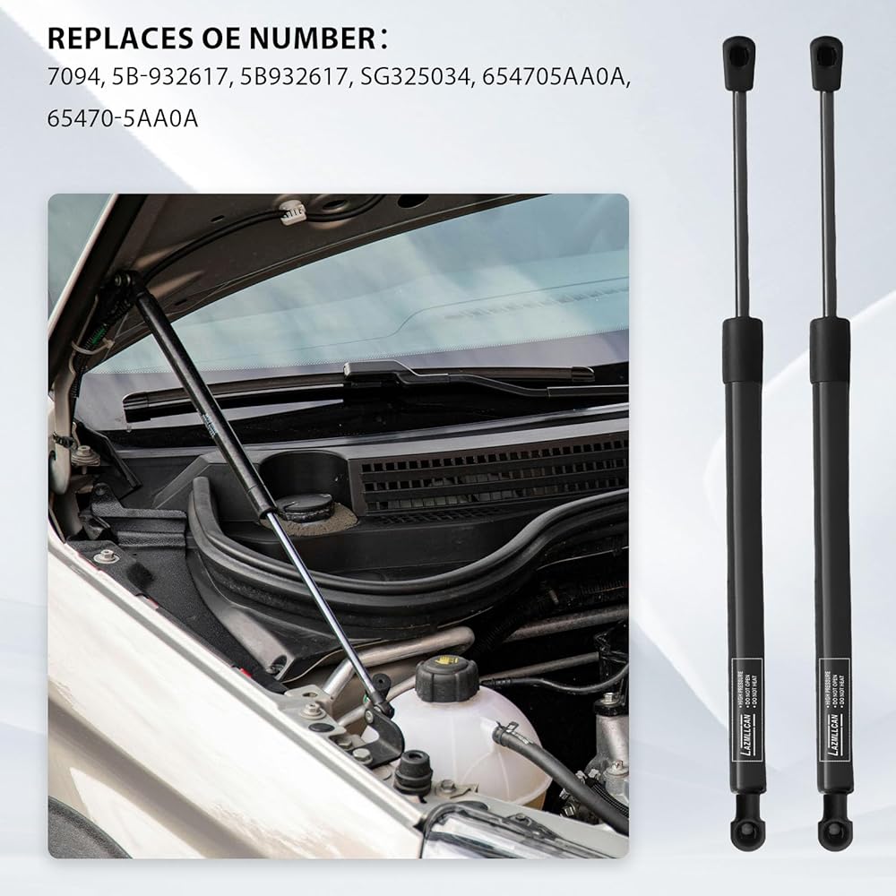 【Part Number】Replacement for 388149, 654705AA0A, 65470-5AA0A, 654705AA1A, 65470-5AA1A, 654715AA0A, 65471-5AA0A, 654715AA1A, 65471-5AA1A, 7094, 749520, 749759, 763882, 764360, 899125, 932617, SG325034 Ensure compatibility by comparing the Lift Supports part numbers of your original gas struts before purchasing.
