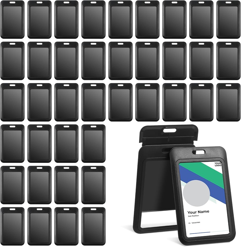 Package Includes: Receive 40 pieces of black vertical ID badge holders, each measuring length 11cm/4.33 inches, width 7cm/2.76 inches. Perfect for holding two standard-sized cards, such as credit cards, ID cards, and access cards.