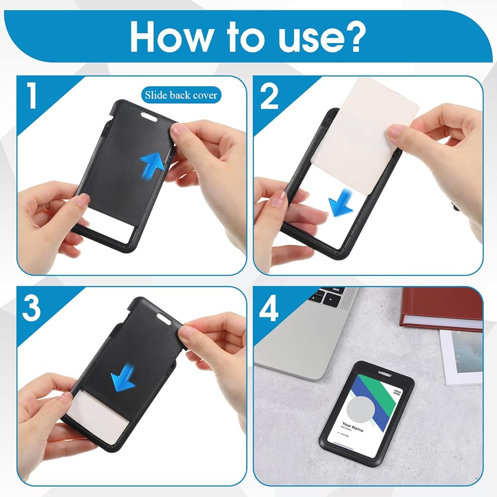Easy Access: The vertical badge holder design allows for quick and easy access. Simply slide the back cover up to open and down to close, ensuring your cards are secure and easily accessible.