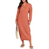 Design - Women's sweater maxi dress is crafted with premium waffle knit fabric that feels warm and gentle against the skin, Its button-up V-neckline and roomy yet flattering oversized make it a chic and effortless choice for any occasion. this sweater maxi dress it's a wardrobe essential that embodies both comfort and fashion-forward style.