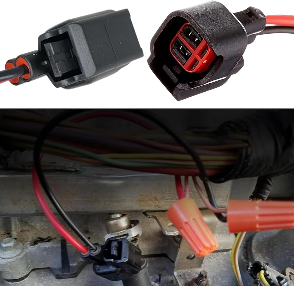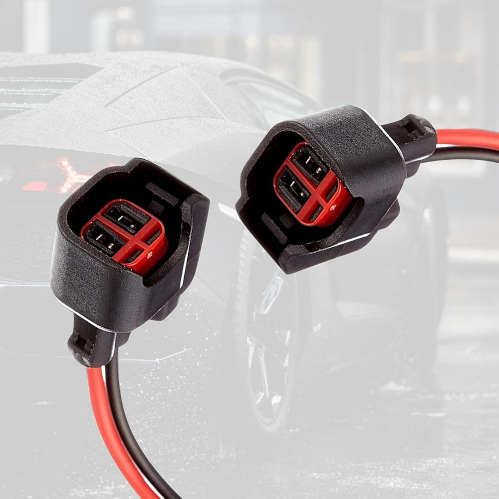 2 PCS Car Fuel Injector Connector, EV6 EV14 Low-frequency Leaded Multi-Functional Wire Pigtail Connector, Replacement Modification Accessories, Compatible with Most Car Models (Black)
