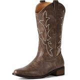 EXQUISITE EMBROIDERY AND PREMIUM MATERIALS: These women's cowboy boots are crafted from high-quality man-made materials, featuring intricate stitching for enhanced durability. The refined Western-inspired detailing adds a stylish accent to any outfit.