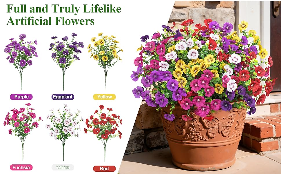 No Maintenance: Faux flowers for outdoor planters provide long-lasting beauty without the hassle of watering or daily care; outdoor fake flowers stay fresh and in full bloom wherever you display them, maintaining a charming beauty all year round