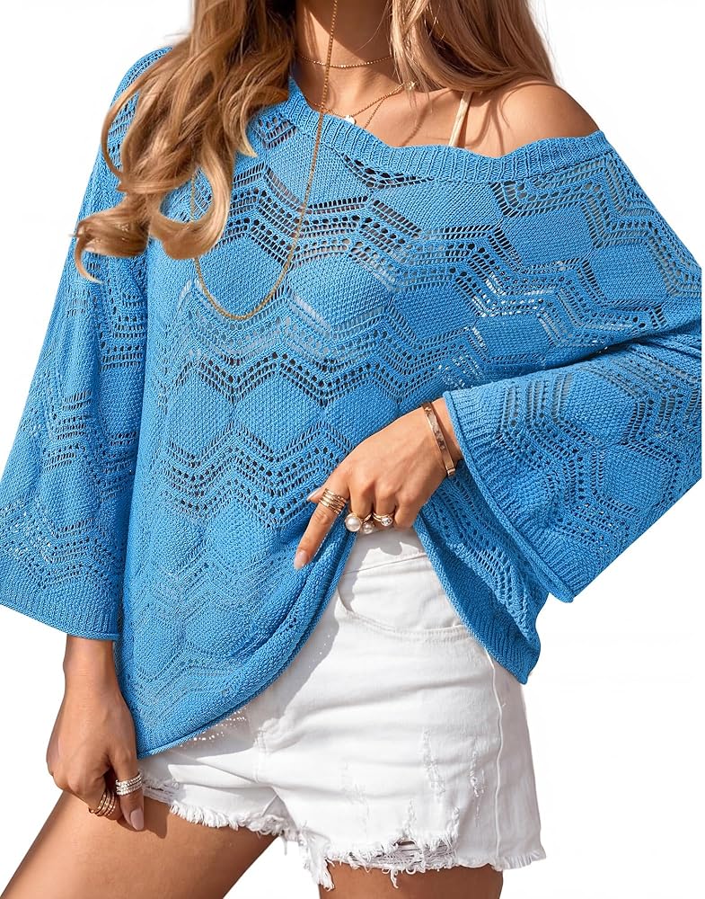 Features: Crochet hollow out and off the shoulder design, exquisite crochet lace pattern, bell sleeve, loose fit, semi-sheer, bikini cover up, summer casual pullover sweaters for women. A loose boat neckline adds a touch of charm and femininity, you can drape it off of one shoulder.to look more sexy and attractive. Hollow out design improves heat dissipation, increases boho fashion, and highlights your graceful figure. All you need is in this beautiful cover up!