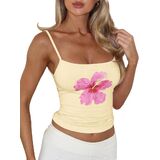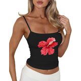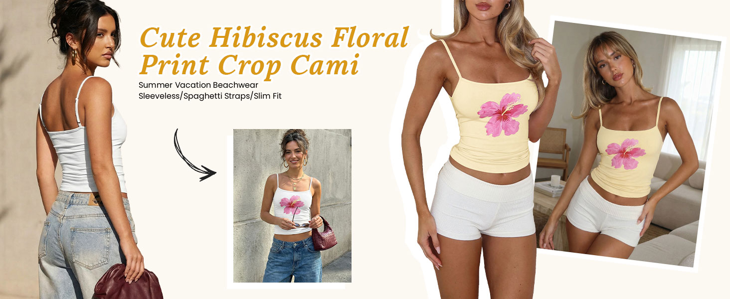 Color: Clean fit sleeveless floral white camisole tops women adorn with cute pink flower pattern, y2k yellow strappy backless crop tank, red hibiscus retro brown cami shirts, sexy square neck black flower summer tanks for soft girls preppy clothes