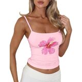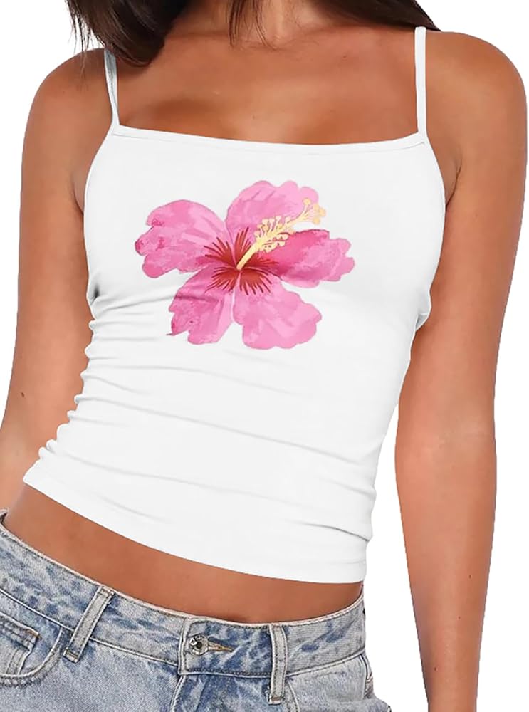 Material: 2000s vintage tight fitted flower graphic crop camisole tops for women 2026 going out, made from stretchy soft blend of 95% cotton, 5% spandex fabric for minimalist clean fit coquette clothes, teen girls preppy cute summer outfits