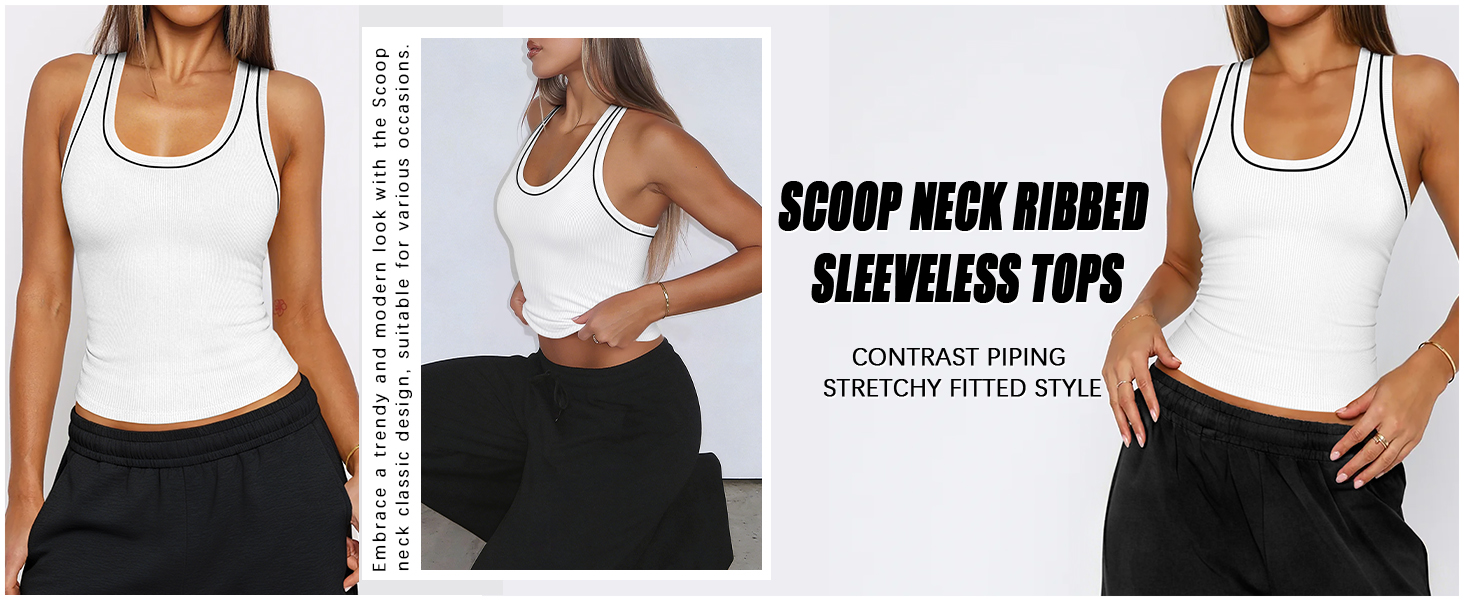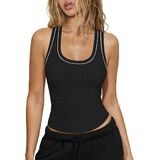 【Features】: Workout tank tops woman features Scoop Neck, open back, racer back, No-built in bra or pad, slim fit and full length but a slightly cropped. Combines a textured ribbed design with contrast piping at neckline and armholes design for effortless comfort and classic preppiness to your outfit.