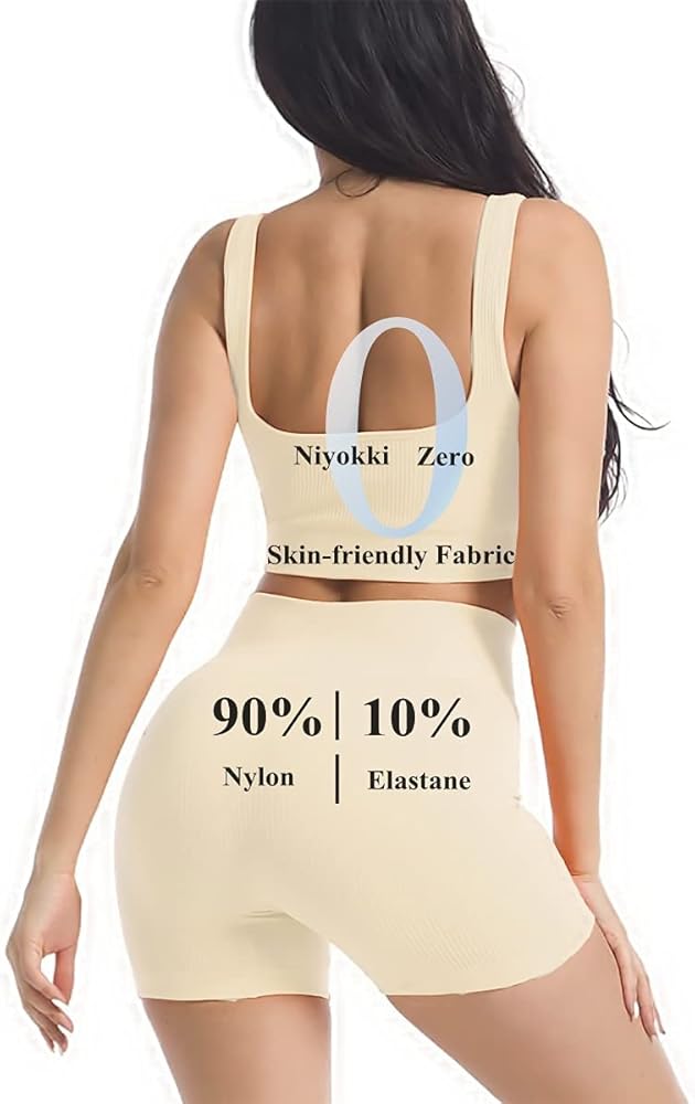[Thick and quality material]: Our ribbed seamless workout set is made of 90% nylon, 10% elastane. The material is breathable, soft, comfy ultra stretchy and not see through. It' s very thick, have elastic and not tight. Moisture wicking and quick dry. Seven popular colors can be selected.