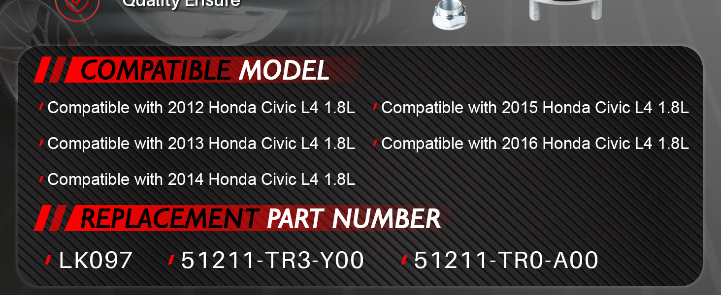 【Fitment】Compatible with 2012 2013 2014 2015 2016 Honda Civic L4 1.8L.Before ordering, please verify the vehicle model and part information to ensure compatibility.