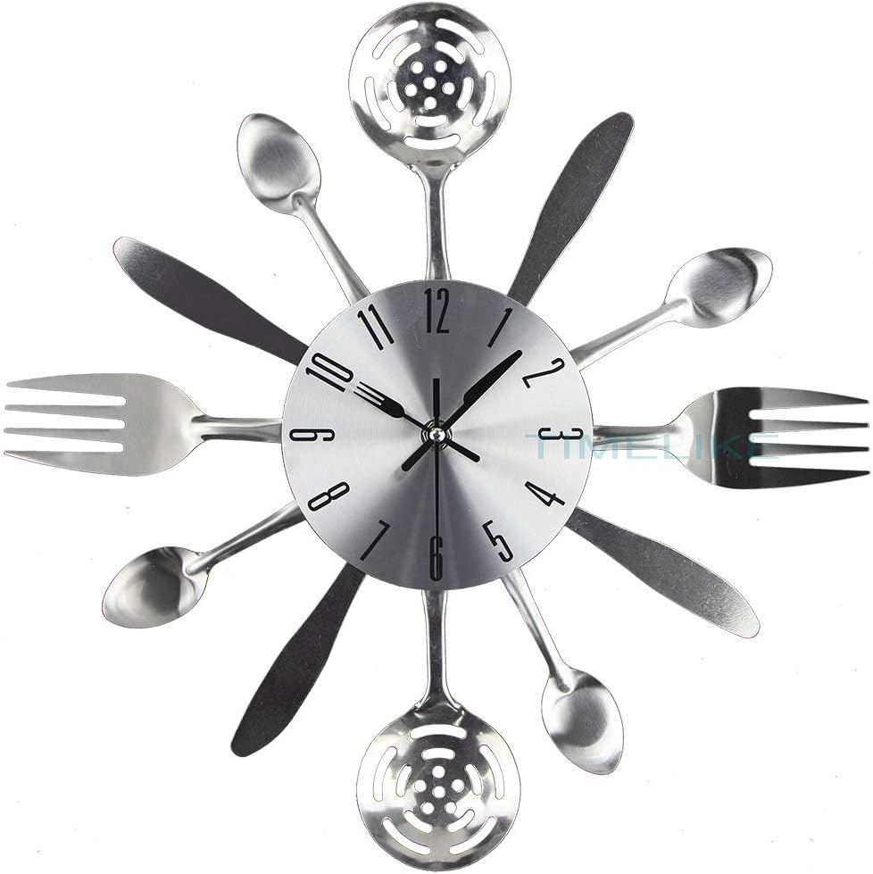 Timelike 14" Kitchen Cutlery Wall Clock with Spoons Forks and Knife 3D Modern Wall Clock for Home Decor and Nice Gifts