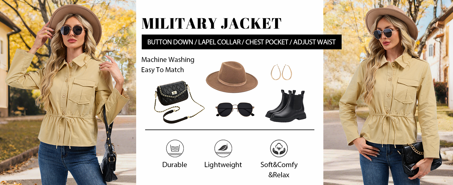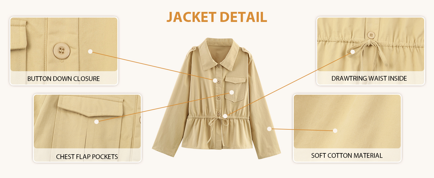 MATERIAL: Women's utility jacket is made of 100% soft cotton, this jacket offers breathable comfort. The lightweight fabric is skin - friendly, perfect for all - day wear in spring and fall