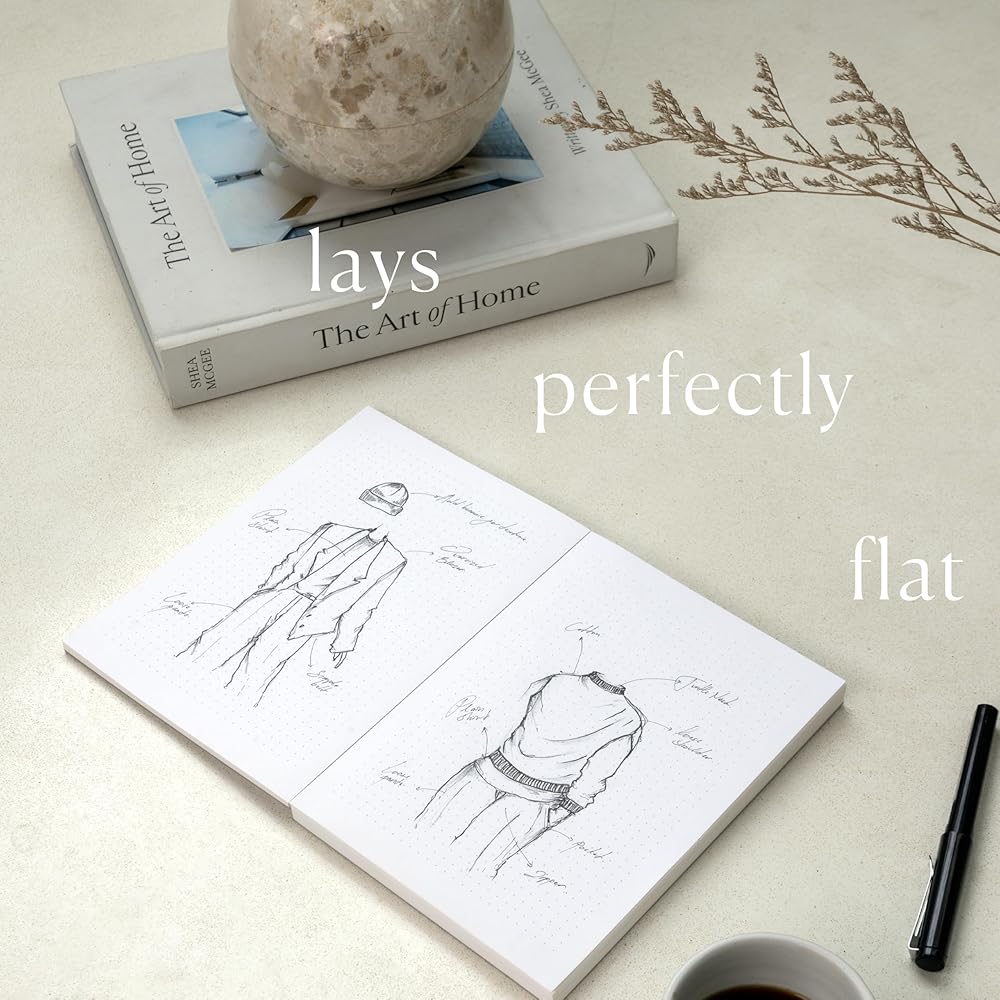 TRUE 180° FLAT: Journal notebook with unique PUR binding — both pages become one seamless surface. No bump, no gutter. Draw across the spread, write across both pages. An a5 journal that opens flat from first page to last.