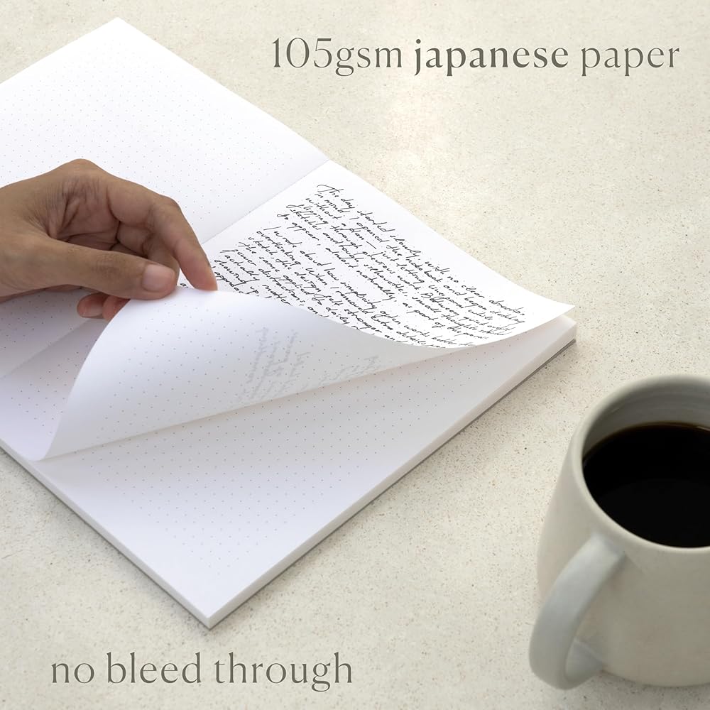 105GSM JAPANESE PAPER: Thicker than the standard 100gsm. No bleed-through, no ghosting. Both sides of every page are usable. Dotted notebook works with most pens, pencils, and markers. Part of our journals for writing and sketching collection.