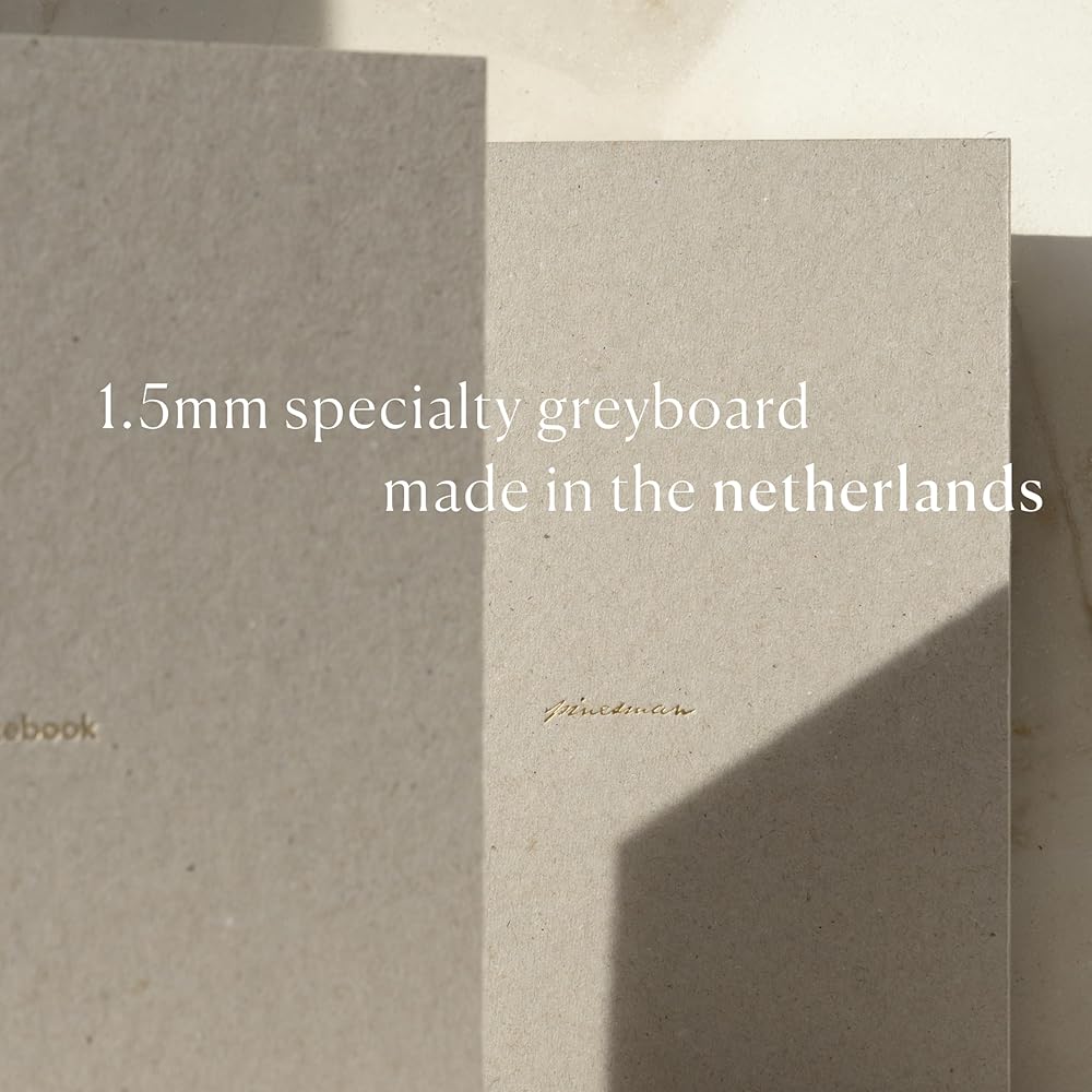 GREYBOARD & GOLD: 1.5mm industrial-grade Dutch greyboard meets refined gold foil. Effortless design. Hardcover journal for men and women.