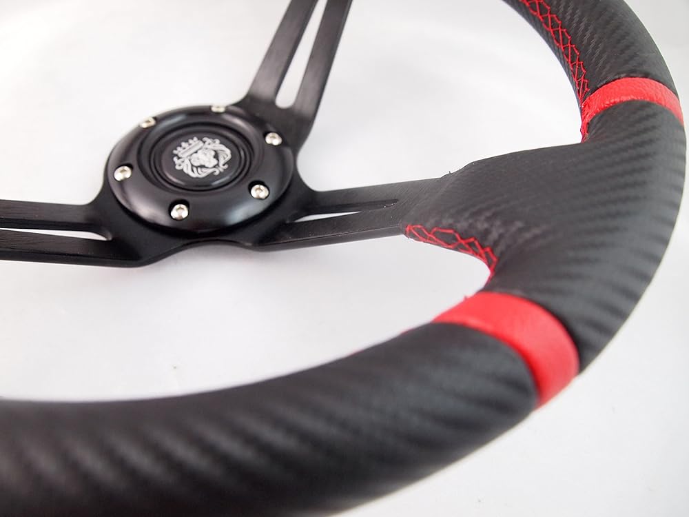 - Made by PVC leather with Carbon Vinyl Wrap on the surface, Red stitch and Black spoke