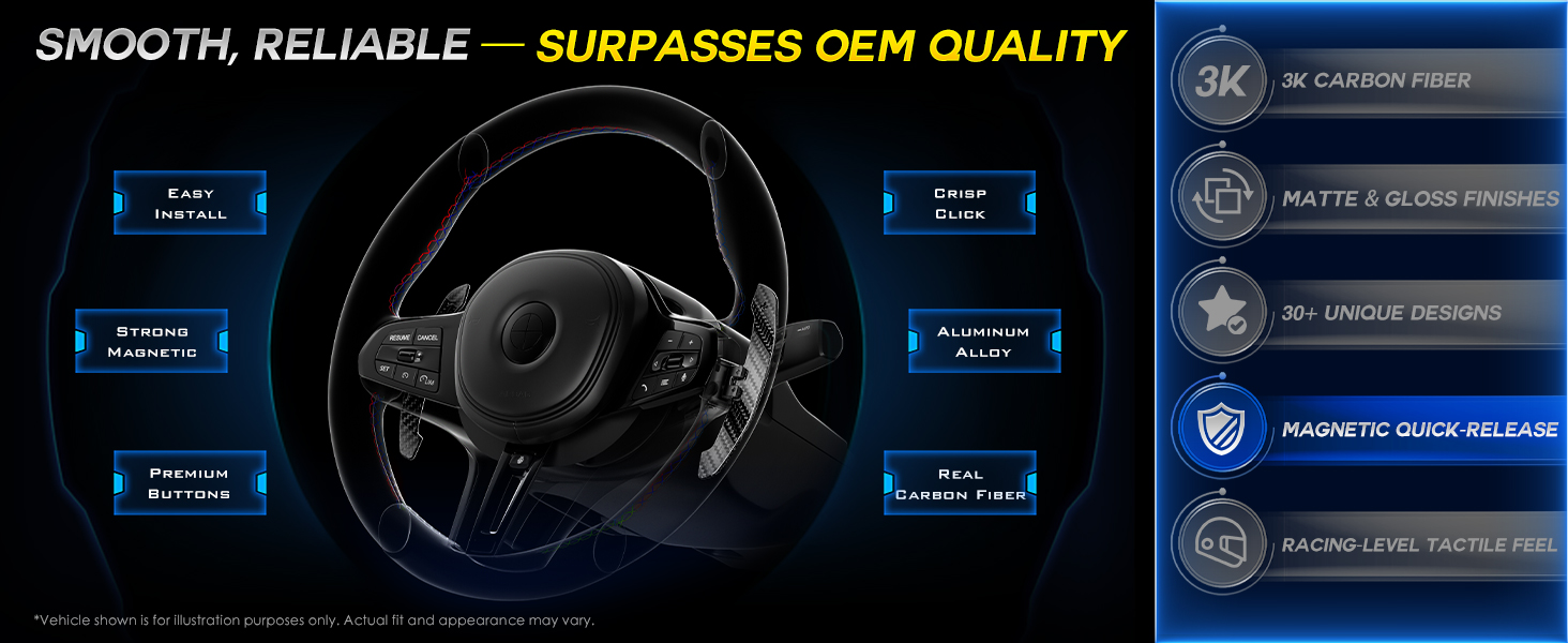 Simple Installation Design: The paddles come with an OEM-fit harness and require no cutting, drilling. Designed for quick installation, you can enjoy your upgraded steering wheel in minutes