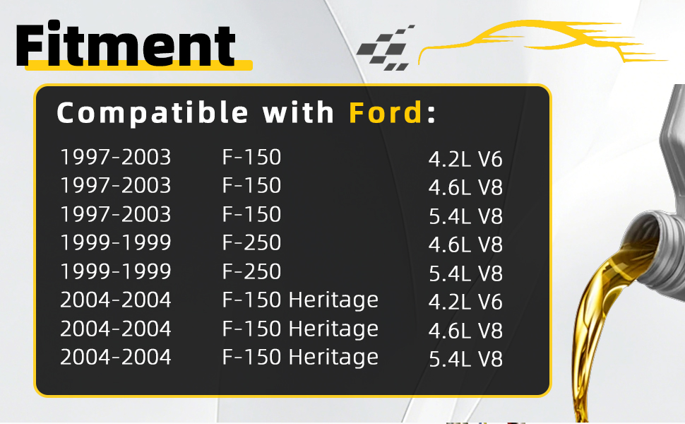 - Fitment: Compatible with Ford: 1997-2003 F-150 4.2L V6/4.6L V8/5.4L V8; 1999 F-250 4.6L V8/ 5.4L V8; 2004 F-150 Heritage 4.2L V6/4.6L V8/5.4L V8