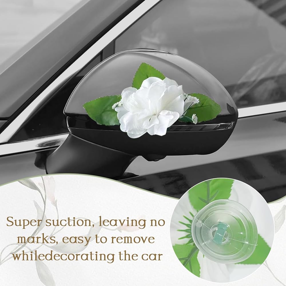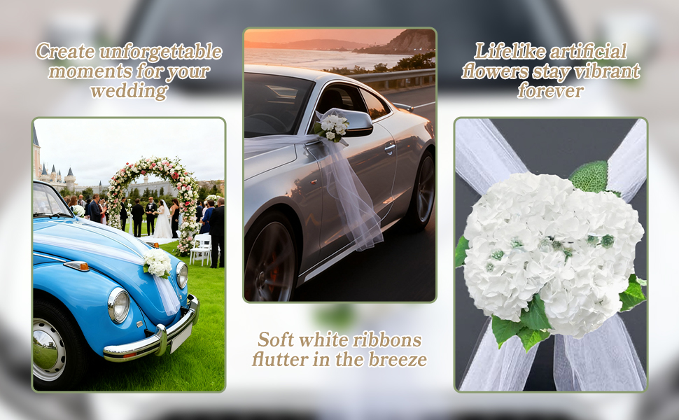 Great for Wedding Photos & Grand Exits: Create unforgettable wedding moments with a beautifully decorated car. The soft white ribbons flow gracefully in the wind, while the floral accents provide an aesthetic touch for wedding photography, videos, and social media posts