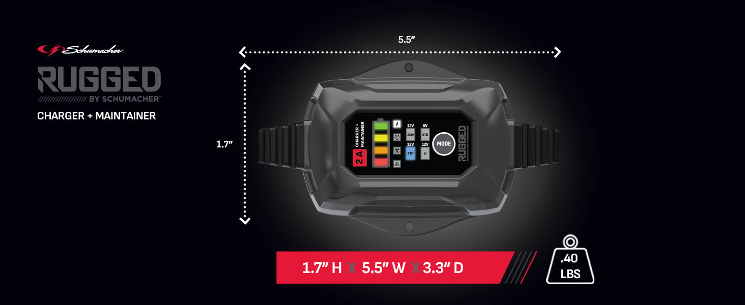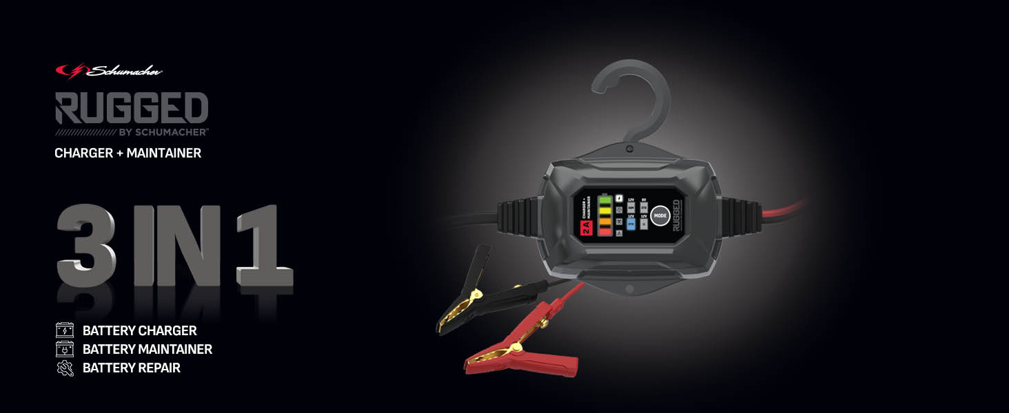 Unleash unstoppable power and total confidence every time with the cutting-edge RUGGED BY SCHUMACHER SC1678 automotive battery charger and maintainer. Specially crafted for car owners, outdoor adventurers, and anyone who needs reliable battery support, this 3-in-1 battery charger, tender, and reconditioner is engineered to deliver maximum power and versatility. With compatibility for 6-volt and 12-volt batteries—including advanced lithium (LiFePO4), standard, AGM, wet cell, gel, deep-cycle, enhanced flooded, maintenance-free, and calcium types—the SC1678 offers a microprocessor-controlled charging and a trickle charge and maintenance mode to keep batteries in peak health, whether vehicles are in use or in storage.