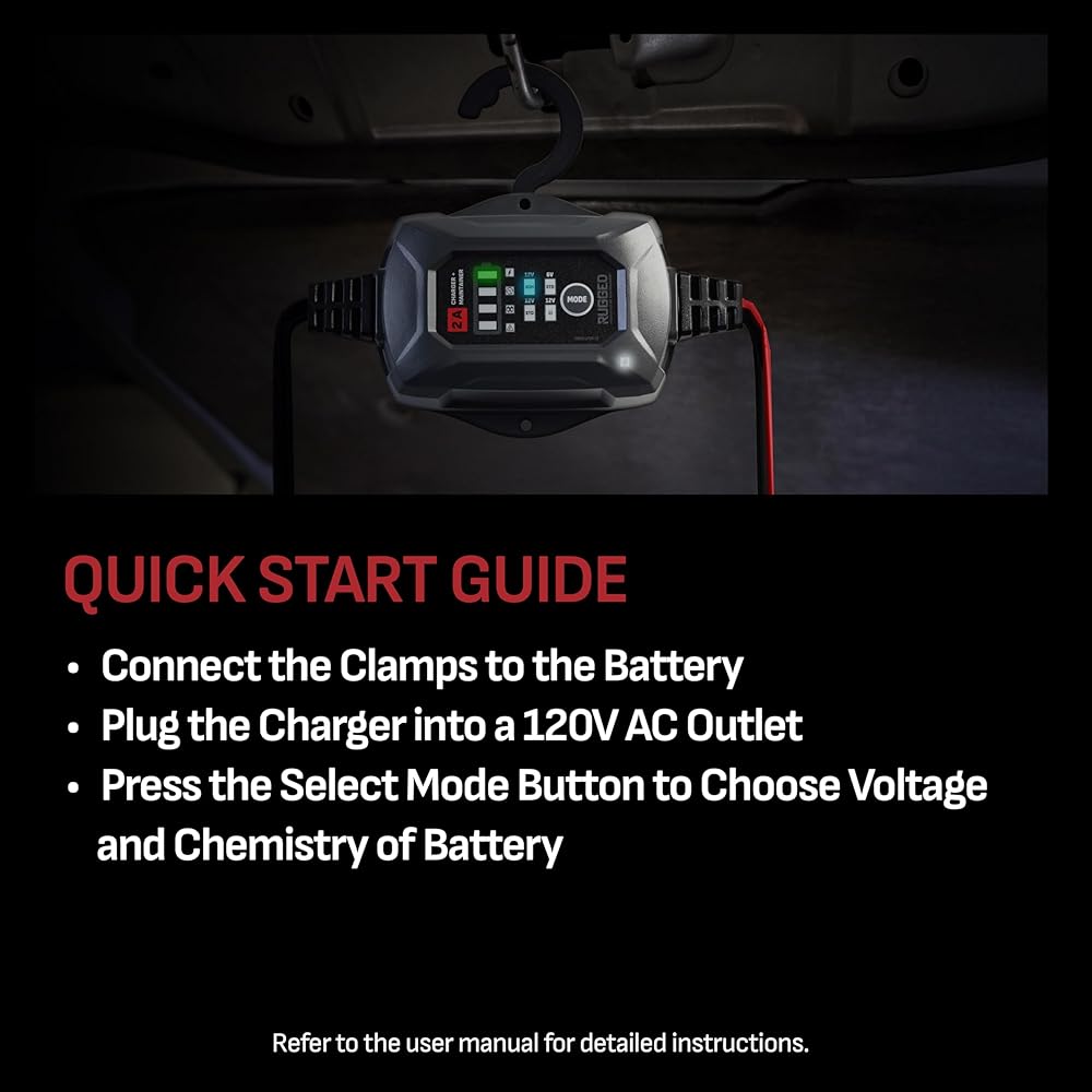 Equipped with a long 6-foot AC power cord, 7-foot booster cables, and intuitive LED status indicators, the SC1678 adapts to any space and workflow. More than just a charger, it's a battery's best ally—designed for the real world and built to last. Fully automatic, maintenance-free, and backed by a 3-year warranty, it stands as the ultimate solution for anyone who demands the most from a battery charger and maintainer.