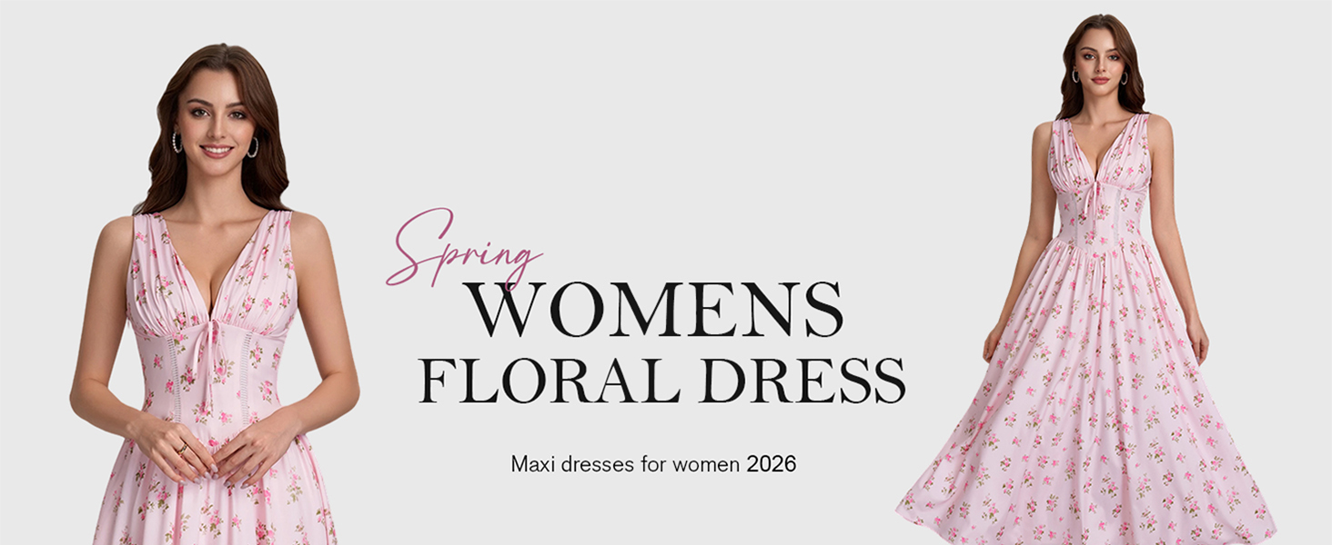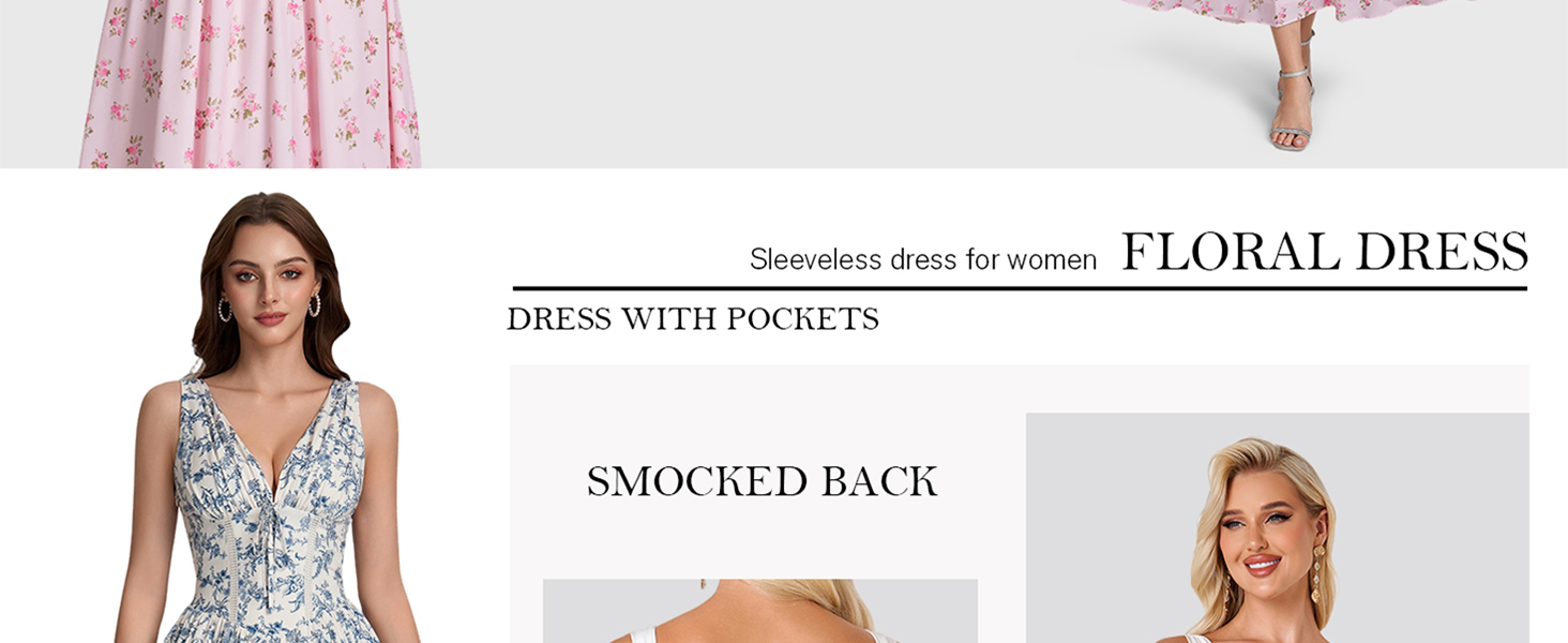 Color: Available in solid and floral options including Black cocktail dress, White wedding guest dresses, Blue Floral tea party dress, and Pink Floral sun dress. Each color works beautifully as a floral wedding guest dress or an elegant solid-color long dress for spring and summer events.
