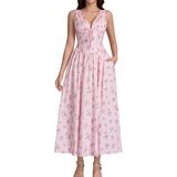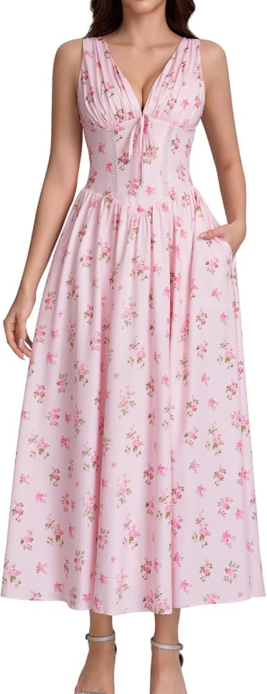 Features: This floral corset wedding guest dress designed with a flattering V-neckline, smocked back, flowy A-line hem and side pockets, create a feminine silhouette that flatters different body types while adding everyday practicality.