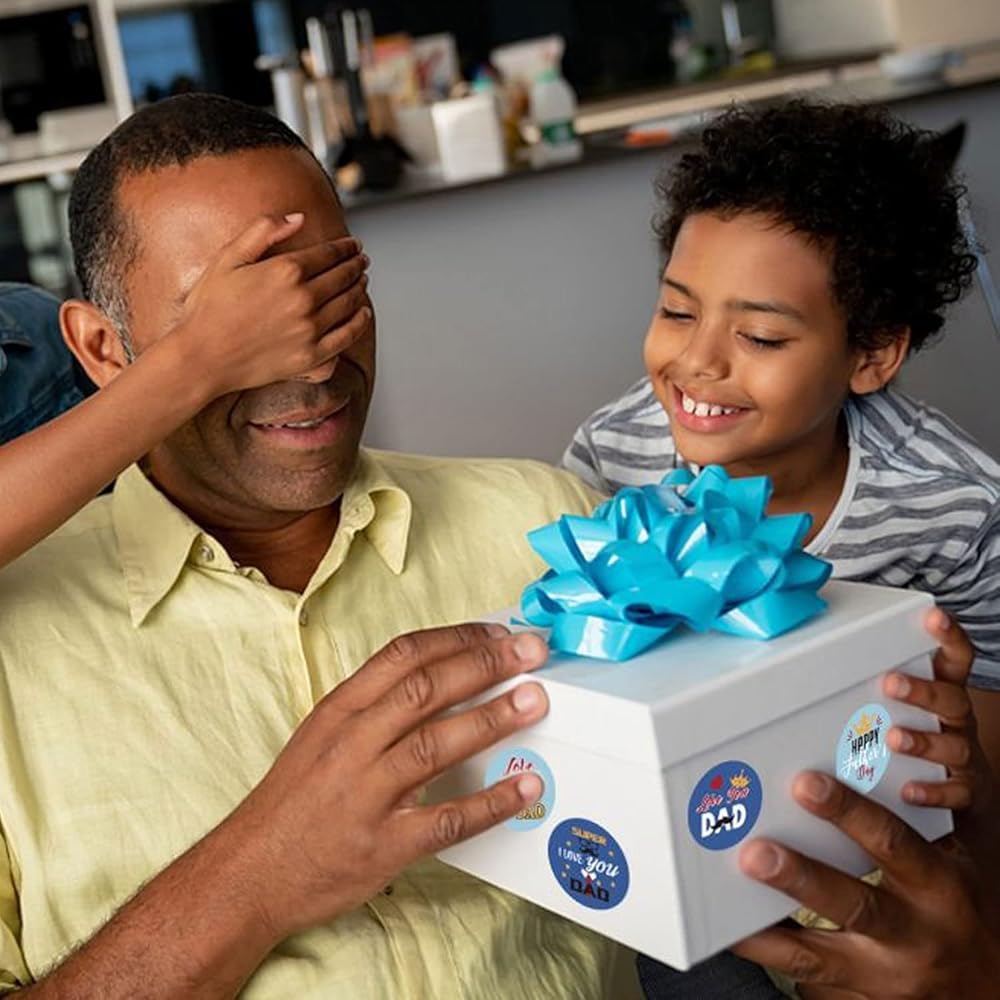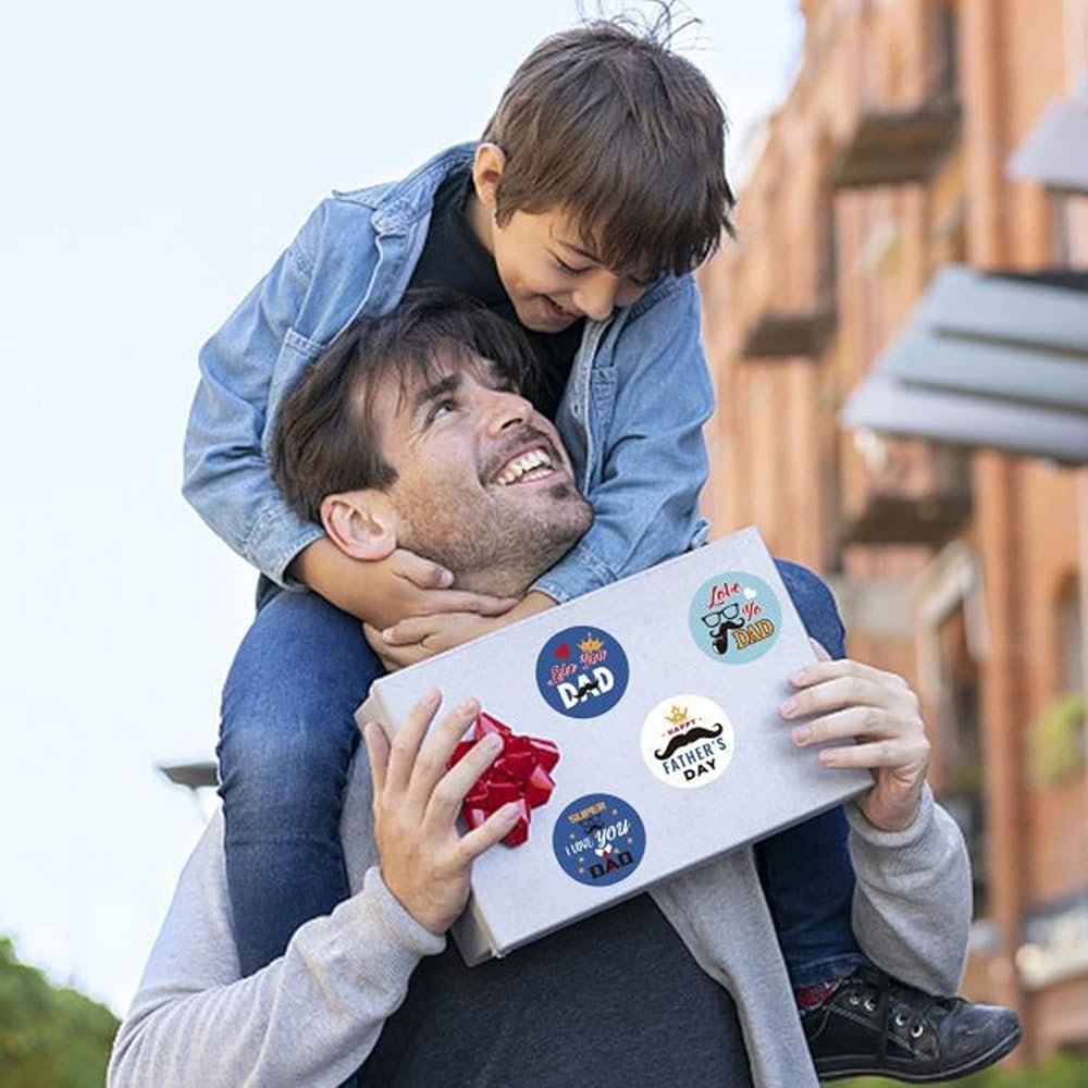 Just peel father‘s day stickers bulk off and stick to any smooth and clear surface. Happy father's day stickers also allow you to combine and mix with other designs according to your preference. Easy to remove without leaving a residue on desire. Self-Adhesive stickers. Sticks great on paper, shirts, plastic bags and most surfaces.