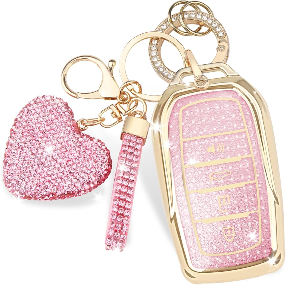 High Quality:For toyota key fob cover is made of lightweight and soft TPU material, the sparkling crystal snowflake pattern is specially designed for women, and with the love keychain, it is fashionable and elegant.