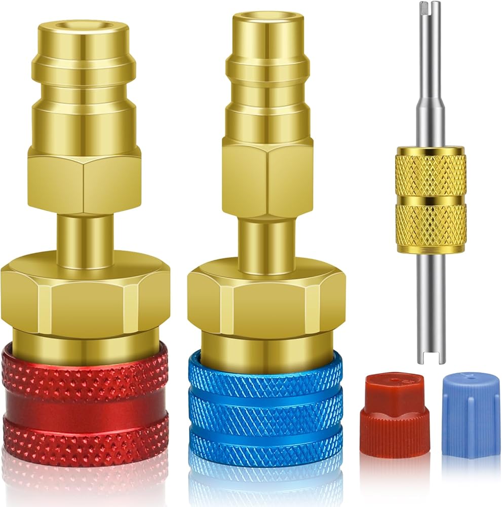 R1234YF Adapter with Valve Core Removal Tool, R1234YF to R134A Quick Coupler, High Low Side Connector Conversion Kit AC Charging for Automotive Air Conditioning Evacuation & Recharging