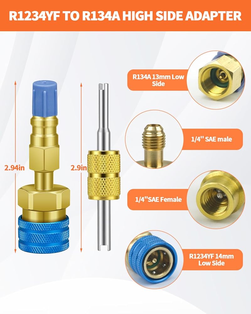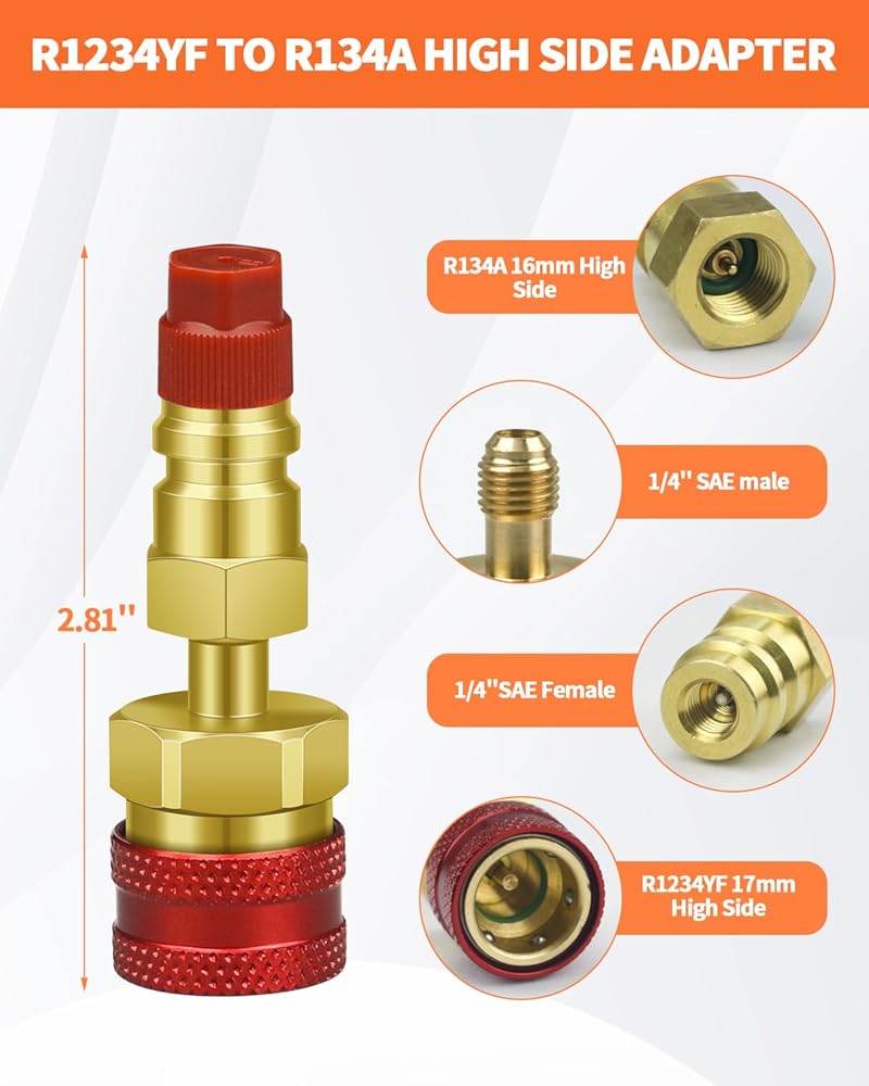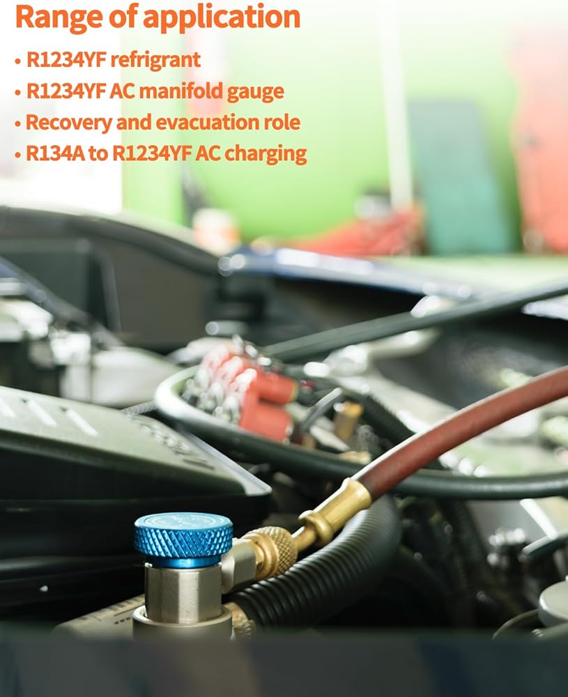 Leak-Free Performance: With a combination of a ball lock design and a rubber seal, these R1234YF adapter provide excellent sealing performance. The R134A to R1234YF adapter features an automatic closing function, making it easier and more convenient to disassemble and install without worrying about leakage