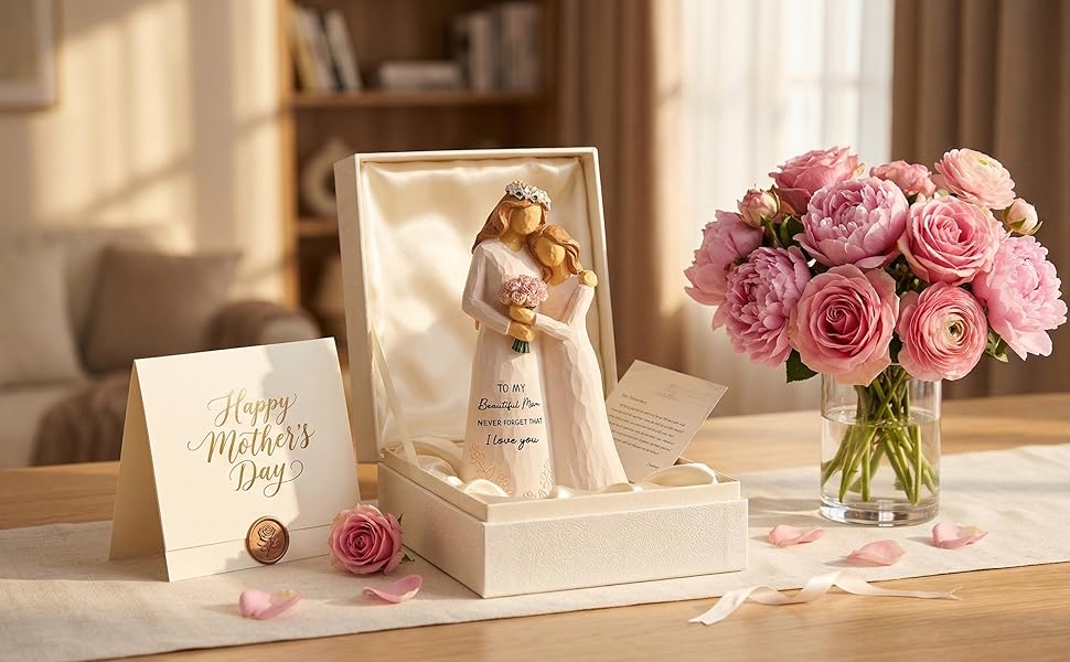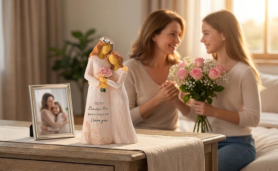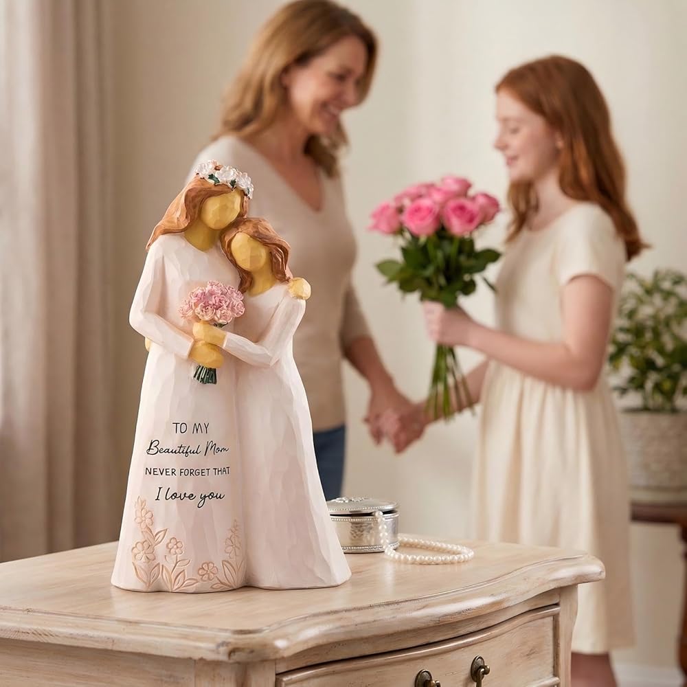 Meaningful Gift for Mom from Daughter: This heartfelt mother and daughter figurine holding flowers is a beautiful gift for mom from daughter, symbolizing love, gratitude, and an unbreakable bond. A thoughtful choice for mom birthday gifts, Mother's Day gifts, or a special “just because” moment.