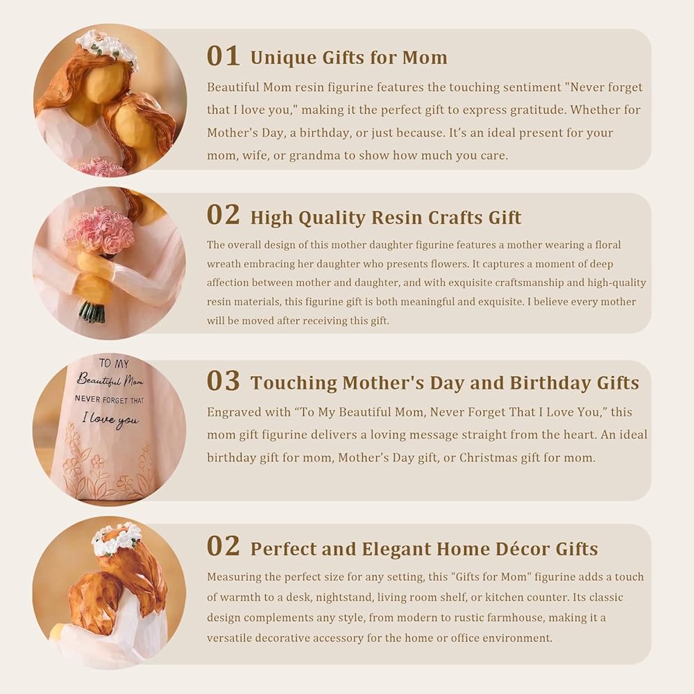 A Perfect Mom Birthday Gift: Engraved with “To My Beautiful Mom, Never Forget That I Love You,” this mom gift figurine delivers a loving message straight from the heart. An ideal birthday gift for mom, Mother's Day gift, or Christmas gift for mom.