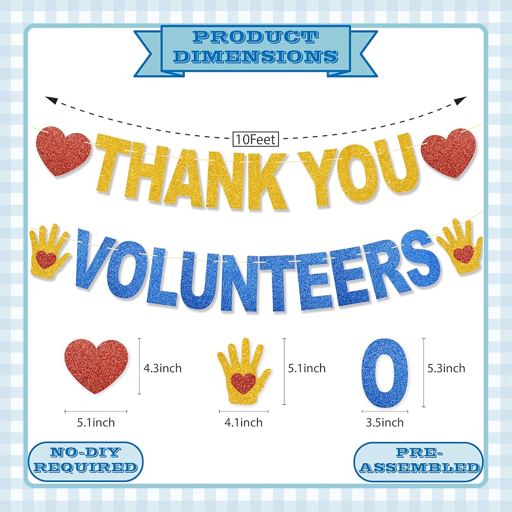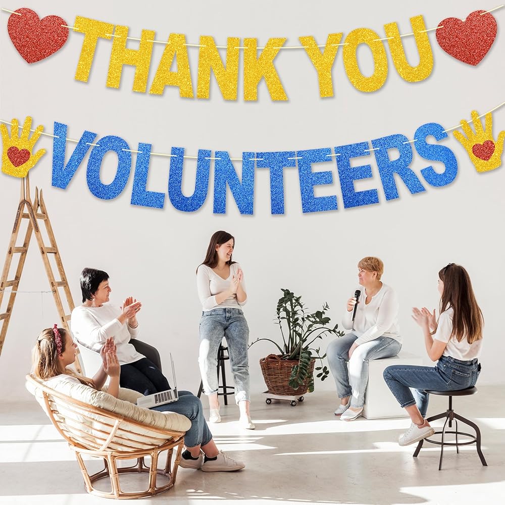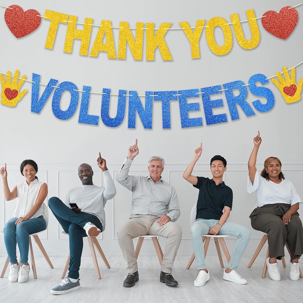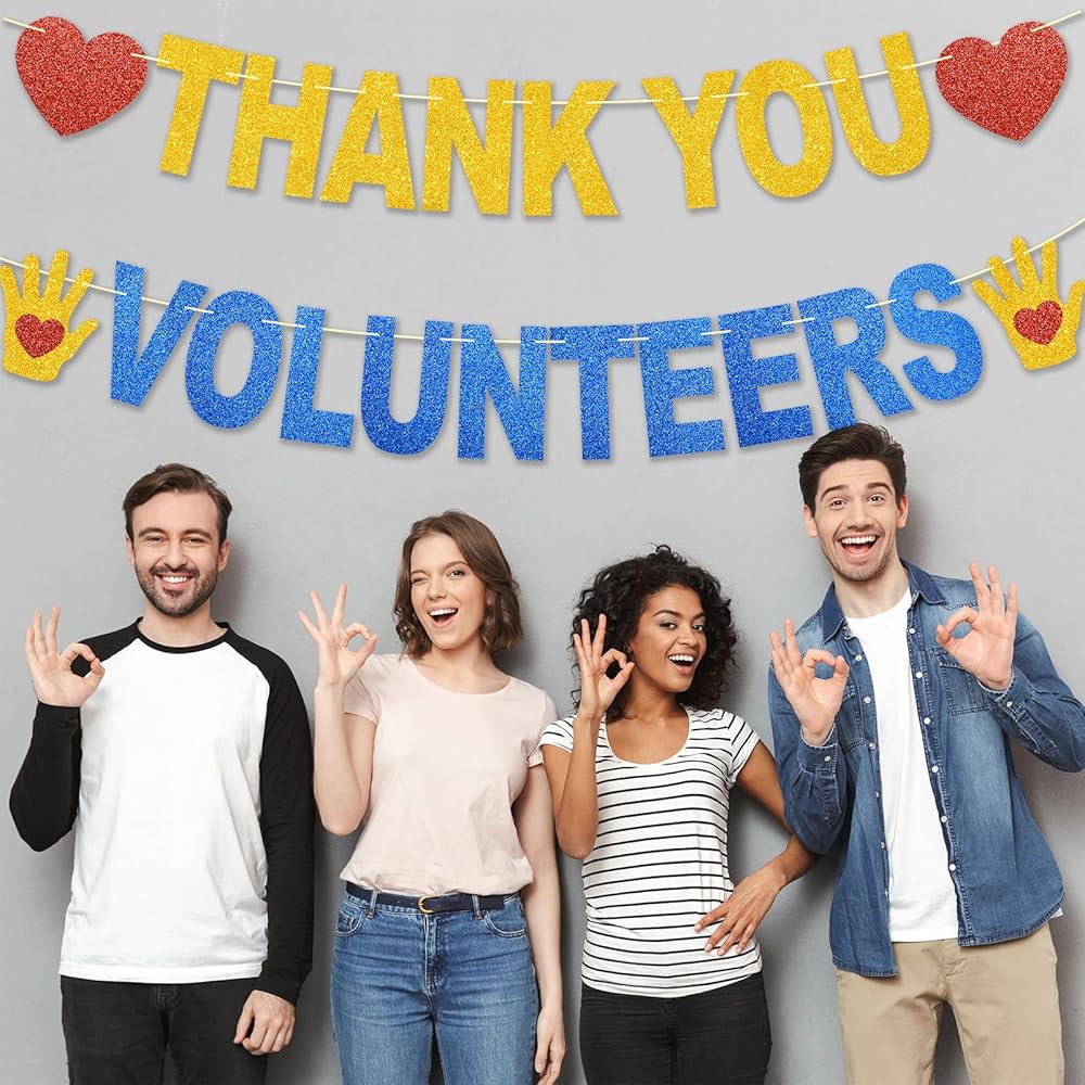 HIGH-QUALITY GLITTER MATERIALS: Made from durable, high-quality glitter materials, this banner is beautifully printed and reusable for Volunteers Month celebrations.