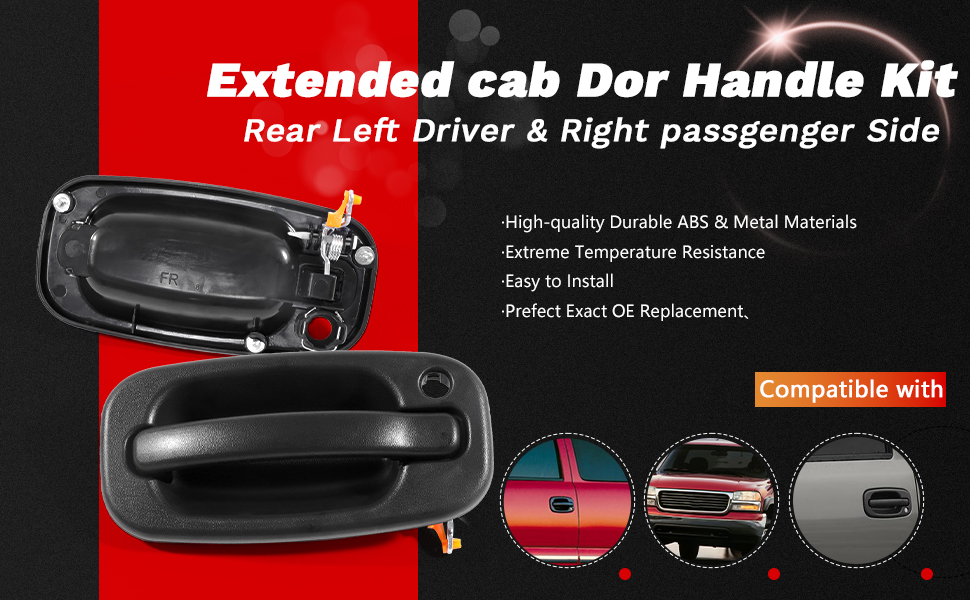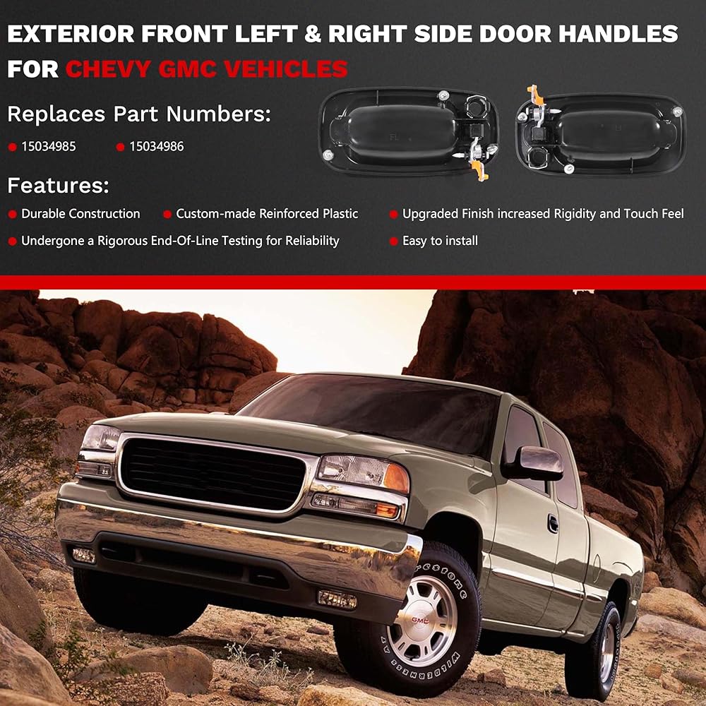 Compatible:Car door handle compatible with 1999-2006 Silverado 1500/2500/3500, 2007 Silverado 1500/2500/3500 Classic, 02-06 Avalanche 1500/2500, 00-06 Suburban 1500/2500 Tahoe | 1999-2006 Sierra 1500/2500/3500, 2007 Sierra 1500/2500/3500 Classic, 00-06 Yukon, 02-05 Yukon Denali | 2002-2006 Escalade