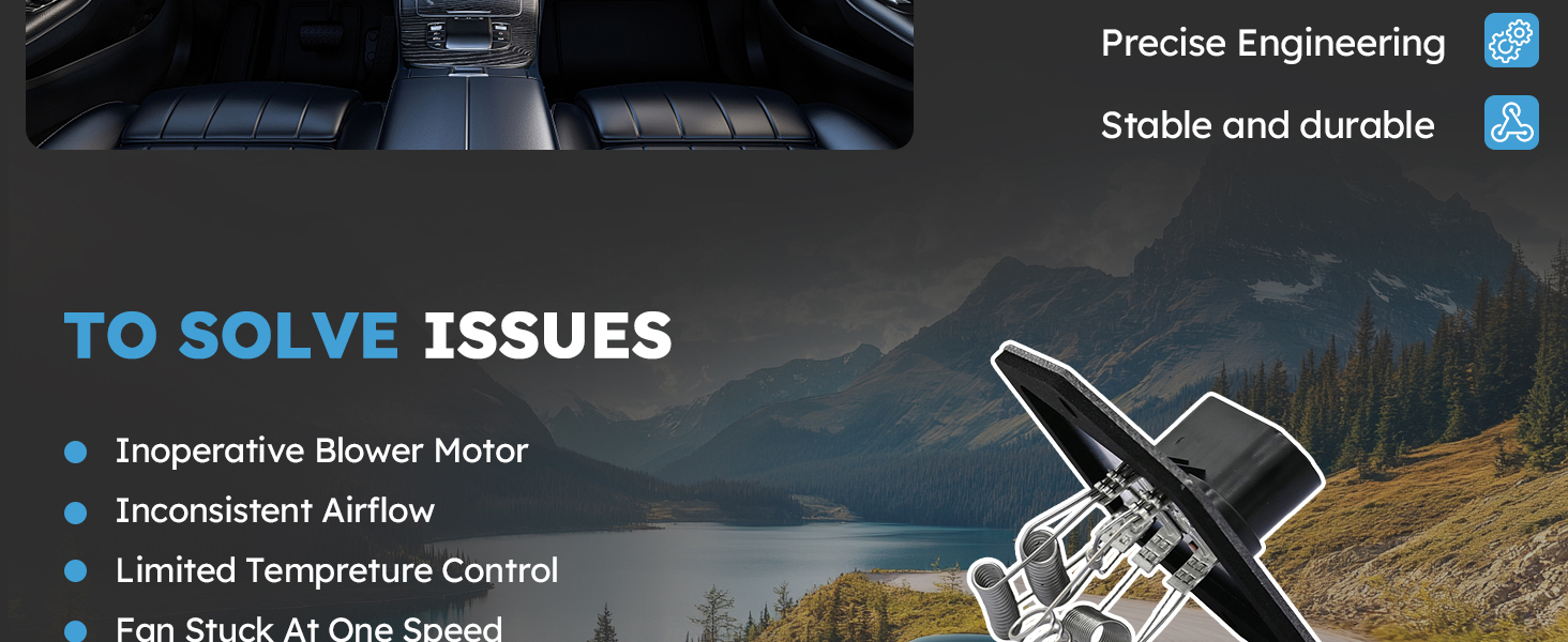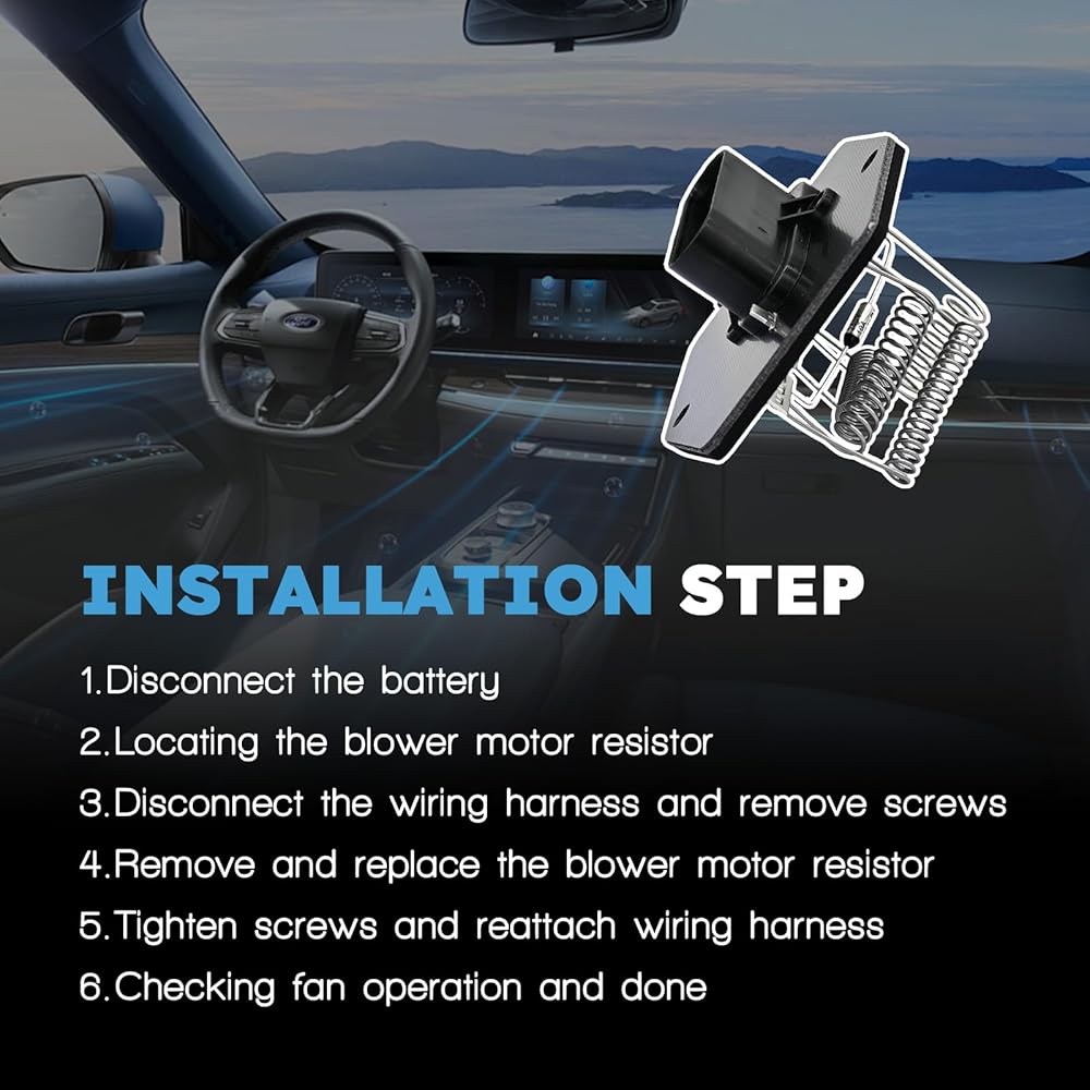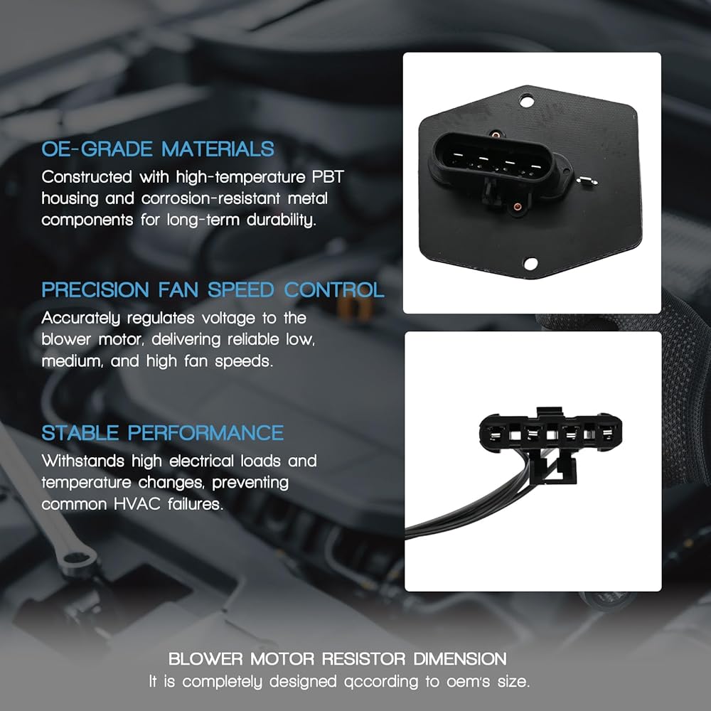 【Function】: The blower motor resistor controls the fan speed of the blower motor by changing the resistance. If your blower motor is stuck at a certain speed and the fan does not work under certain settings, the vehicle ventilation port will not blow air. This blower motor resistor can perfectly solve this problem.