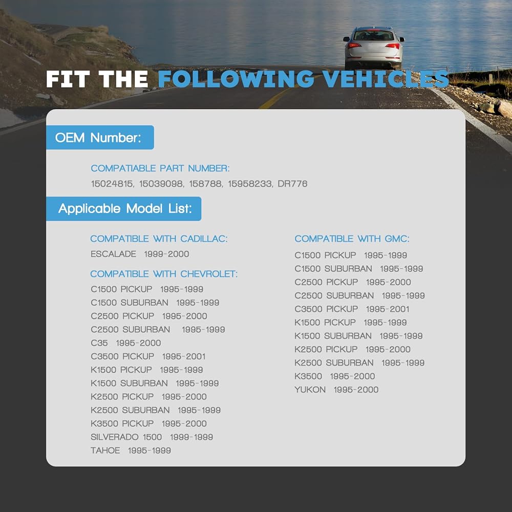 【Fitment】: HVAC Blower Motor Resistor fit for Cadillac Escalade 1999-2000; Fit for Chevrolet C1500 Pickup 1995-1999, C1500 2500 Suburban 1995-1999, C2500 Pickup 1995-2000, C35 1995-2000, C3500 Pickup 1995-2001, K1500 2500 3500 Pickup 1995-2000, K1500 2500 Suburban 1995-1999, Silverado 1500 1999-1999, Tahoe 1995-1999; Fit for GMC C1500 2500 3500 Pickup 1995-2001, C1500 2500 Suburban 1995-1999, K1500 2500 Pickup 1995-2000, K1500 2500 Suburban 1995-1999, K3500 1995-2000, Yukon 1995-2000
