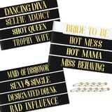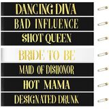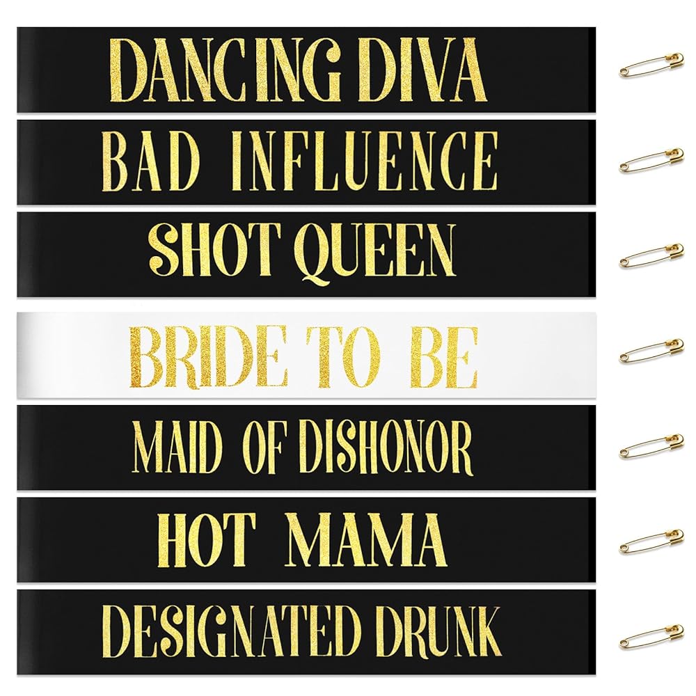 Value 18- Piece Set: Includes 1 “BRIDE TO BE” ribbon in white with gold lettering and 11 bridesmaid ribbons in black with gold lettering, with 6 spare ribbons, to meet the needs of multi-party.
