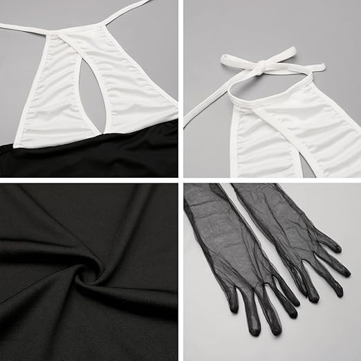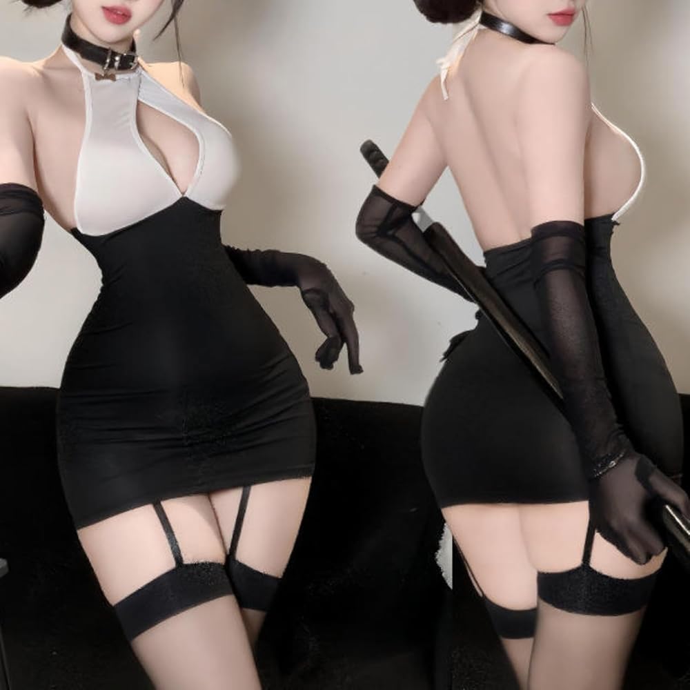 Women's Cosplay Lingerie Set Secretary Outfit Sexy Fitted Halter Neck Mini Dress Backless Cut-Out Office Lady Uniform Secretaty Role Play