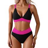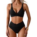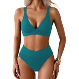Women's Ribbed Bikini Sets Two Piece Swimsuit V Neck High Waisted Bathing Suit