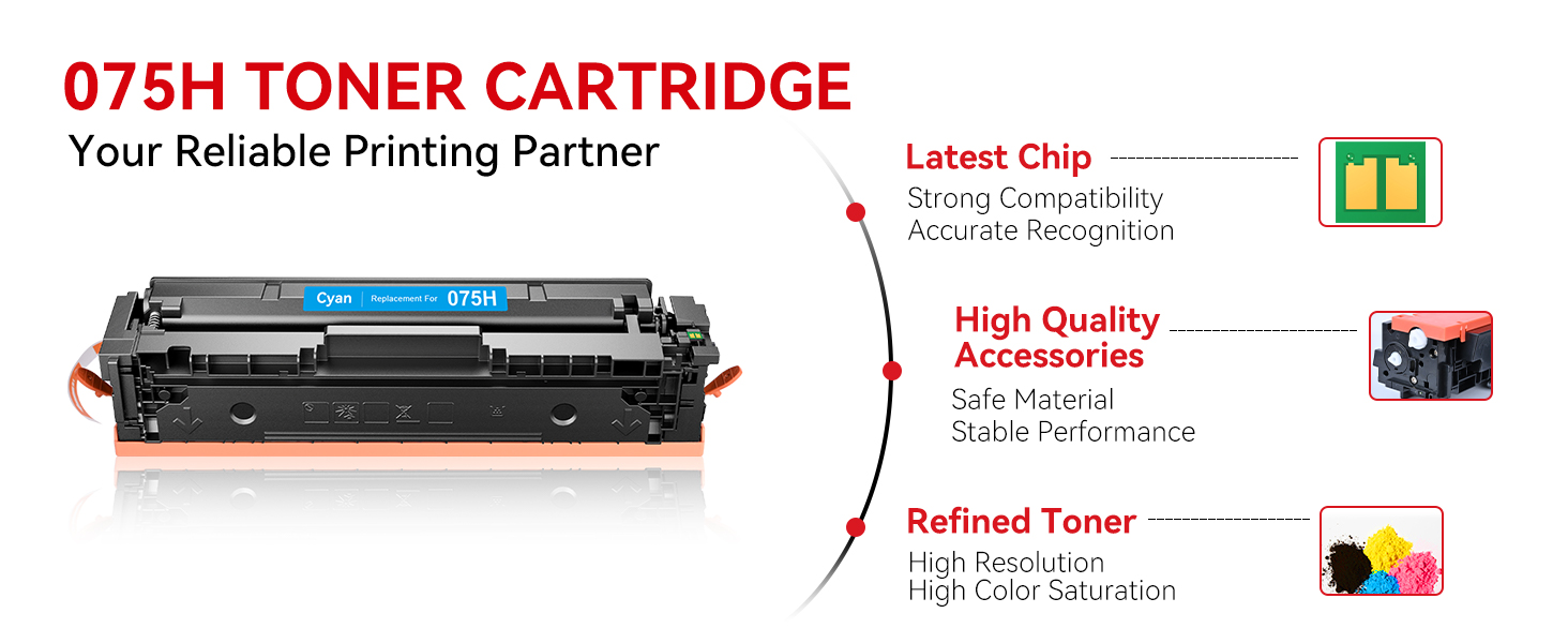 Printing Performance: CRG-075H 075 cartridge utilizes premium toner powder (instead of ink) to produce sharp, crisp text and vibrant, true-to-life color outputs. The prints are fade-resistant, ensuring your documents, reports, or marketing materials remain in good condition for long-term storage