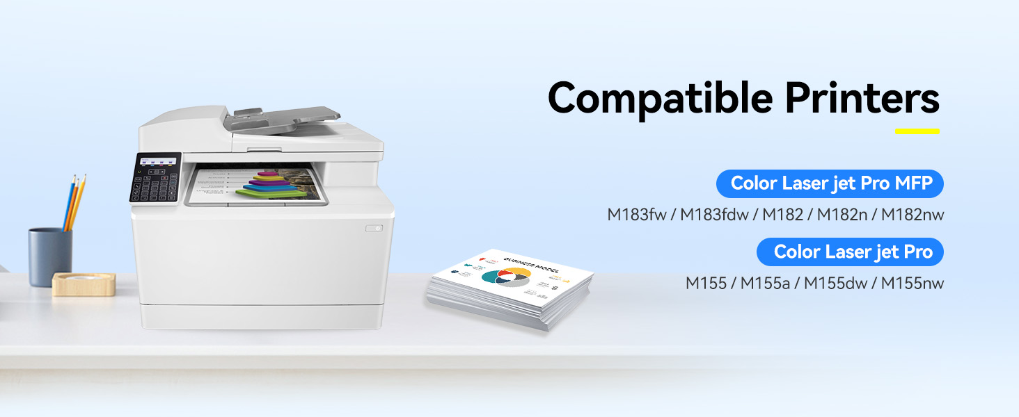 Compatible Printers: Compatible for HP Color Laser jet Pro MFP M183fw, M183fdw, M182, M182n, M182nw, M155, M155a, M155dw, M155nw