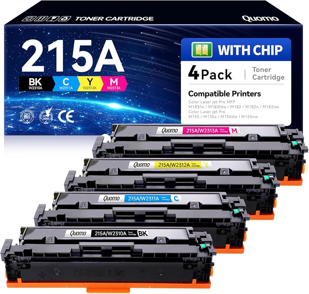 Quomo 215A Toner Cartridges Set with Chip Replacement for HP 215A W2310A W2311A W2312A W2313A Compatible with HP Color LaserJet Pro MFP M182nw M183fw M183fdw M155dw M155nw Series Printer (4 Pack)