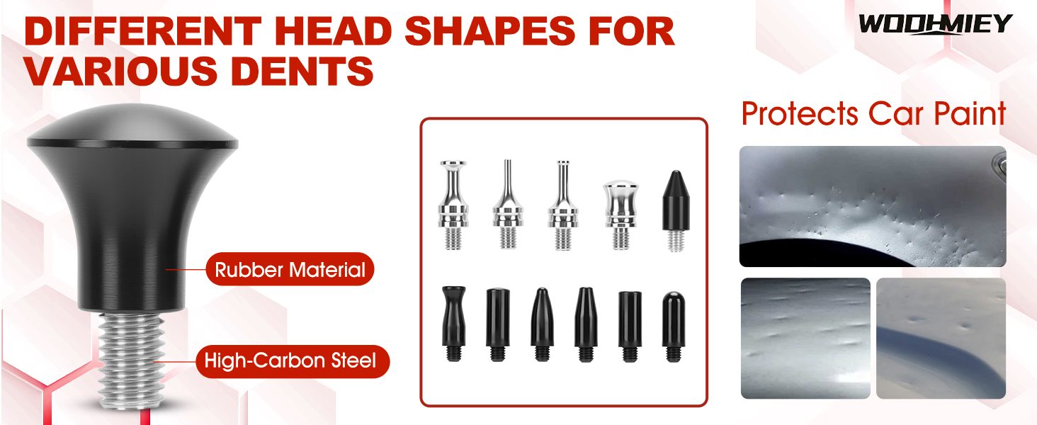 13 Replaceable Heads for Long-Term Use - The dent repair kit comes with 4 aluminum alloy and 9 rubber hammer heads, providing durable metal protection for extended use. Suitable for all your dent puller, body repair tools, and car dent repair needs, ensuring a smooth and polished finish every time.
