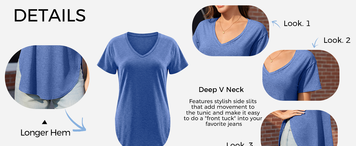 Style Details: This top features a flattering low-cut neckline, a subtle side slit, and a rounded hem—a chic combination that adds a touch of allure while keeping you feeling confident and effortlessly stylish