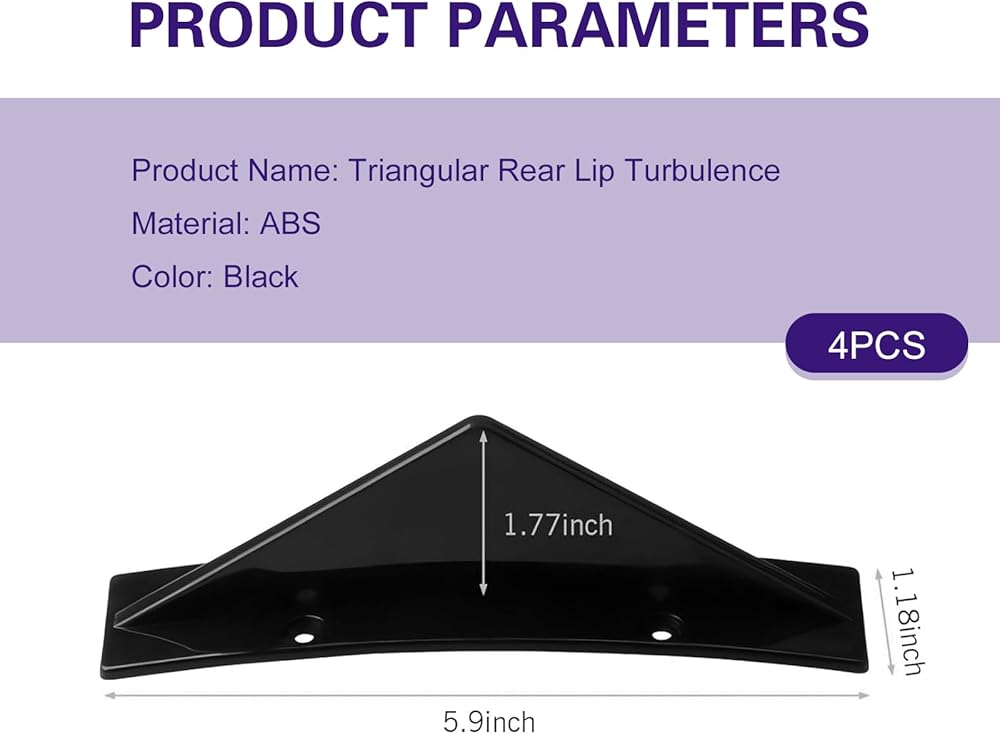 Package: You will get 4 x car rear bumper spoilers, size 5.9 " x 1.18 " x 1.77 ", sufficient quantity, enough to meet your installation and replacement needs, the installation will not affect the normal driving performance of the car.