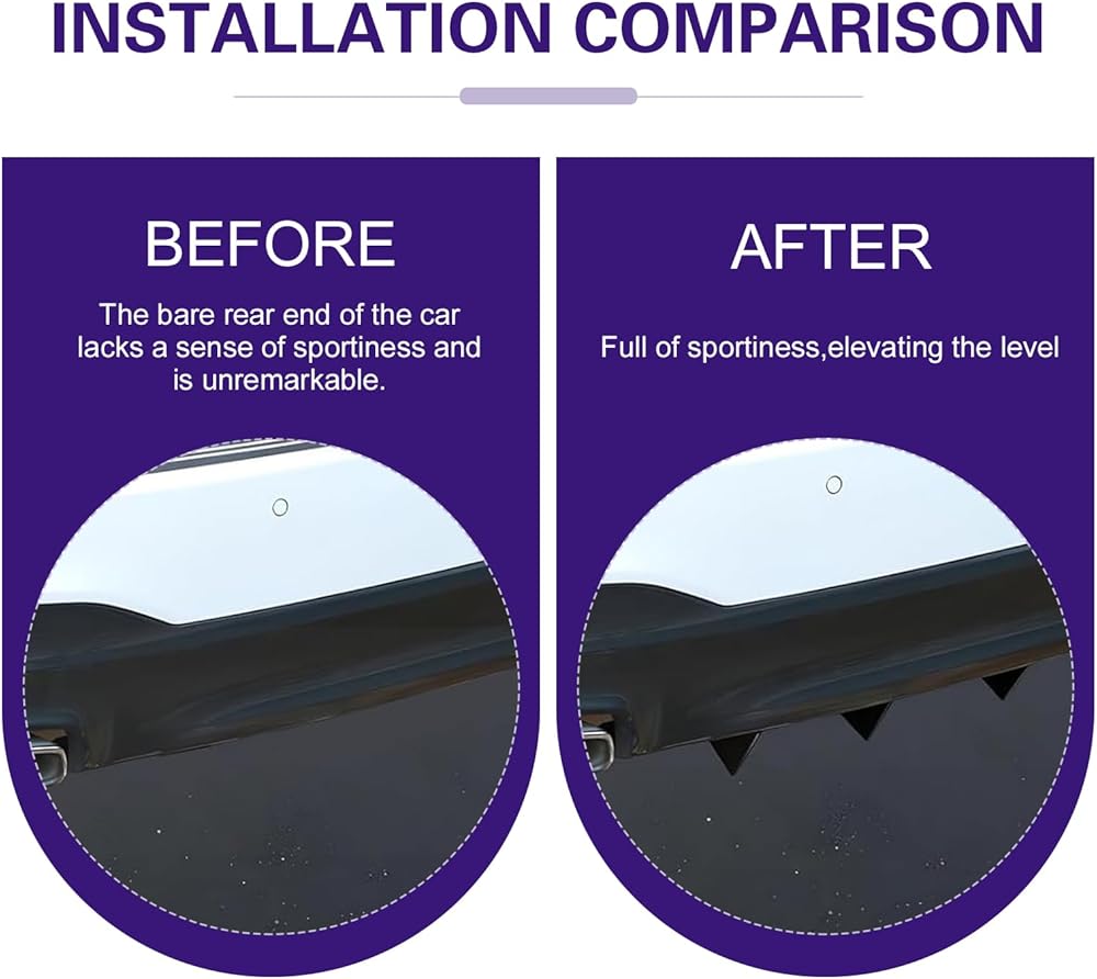 Decoration: This car rear bumper diffuser spoiler is styled with a triangular shark fin shape and a glossy finish for a sporty and personalized style that adds unique visual appeal and enhances the ambiance of your vehicle.